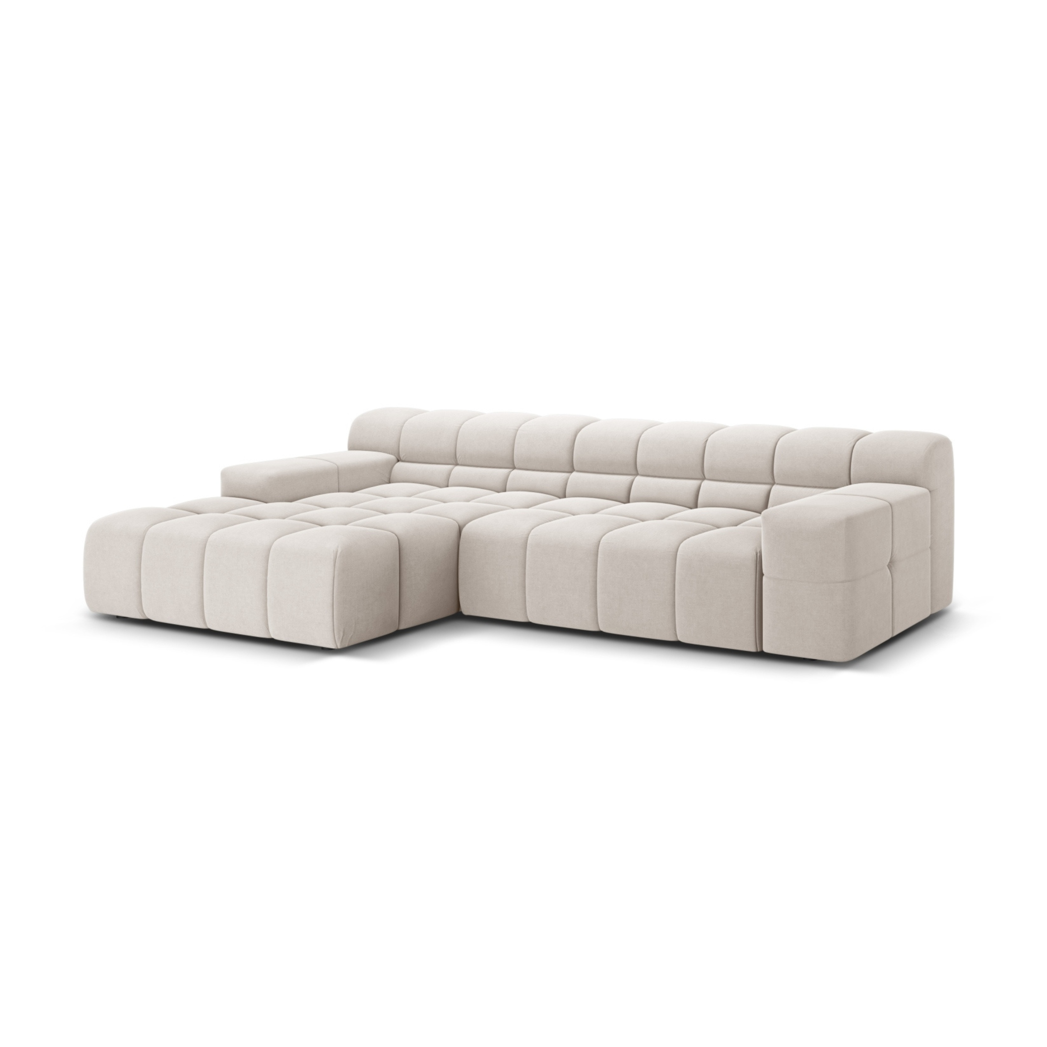 Sedačka sametová 3-místná pravostranná AGAVE světle béžová