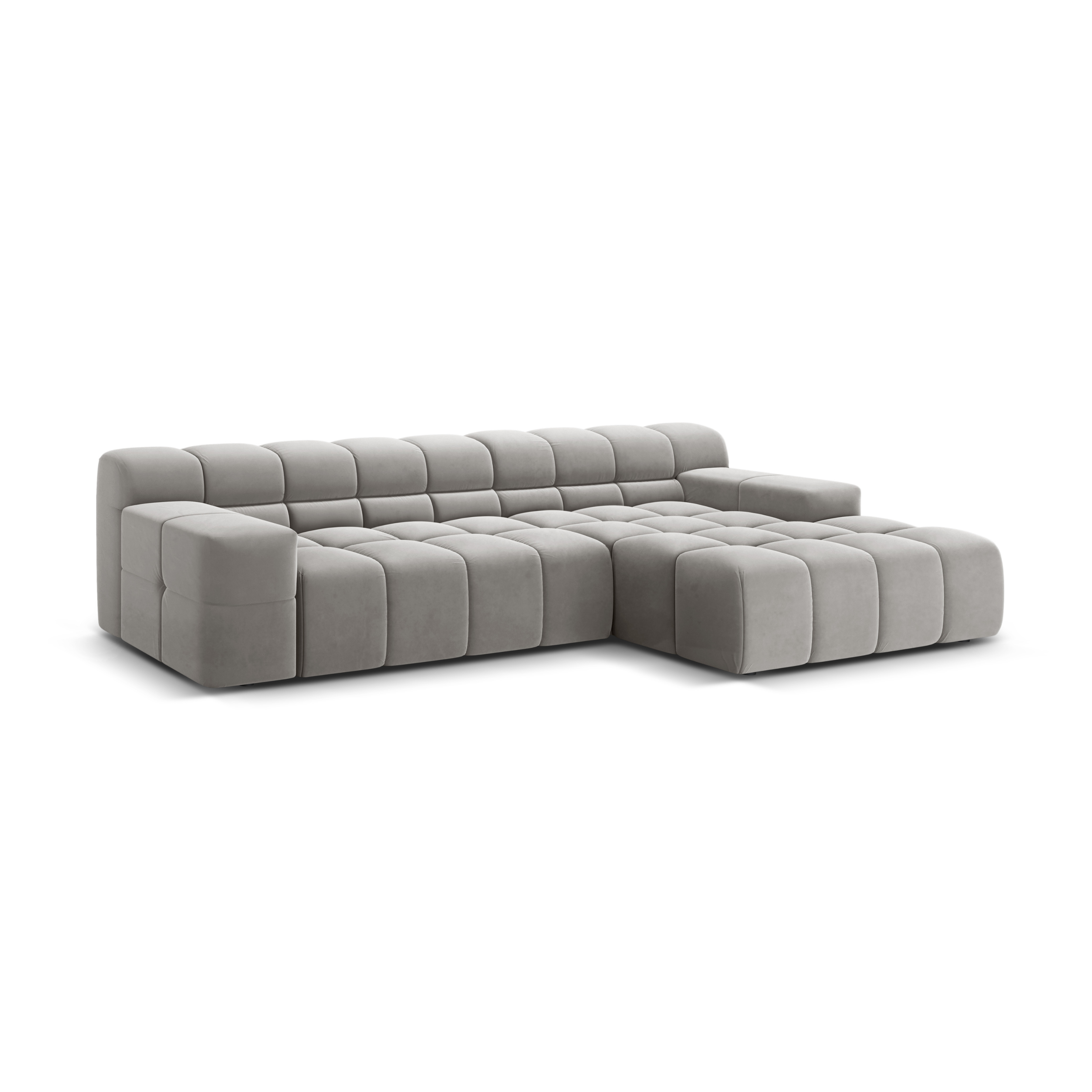 Šedý pravostranný sametový rohový gauč pro 3 osoby AGAVE