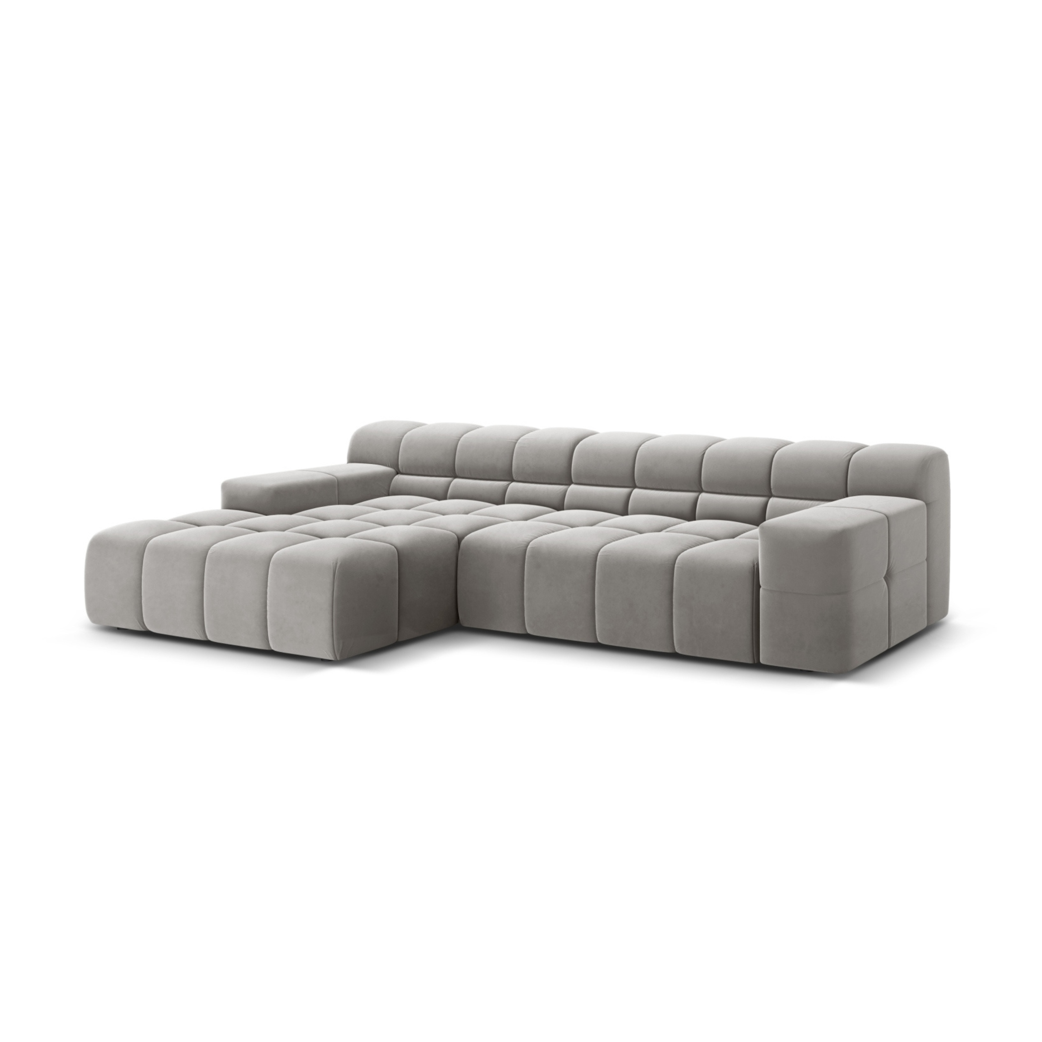 Šedý sametový rohový gauč pro 3 osoby AGAVE levý