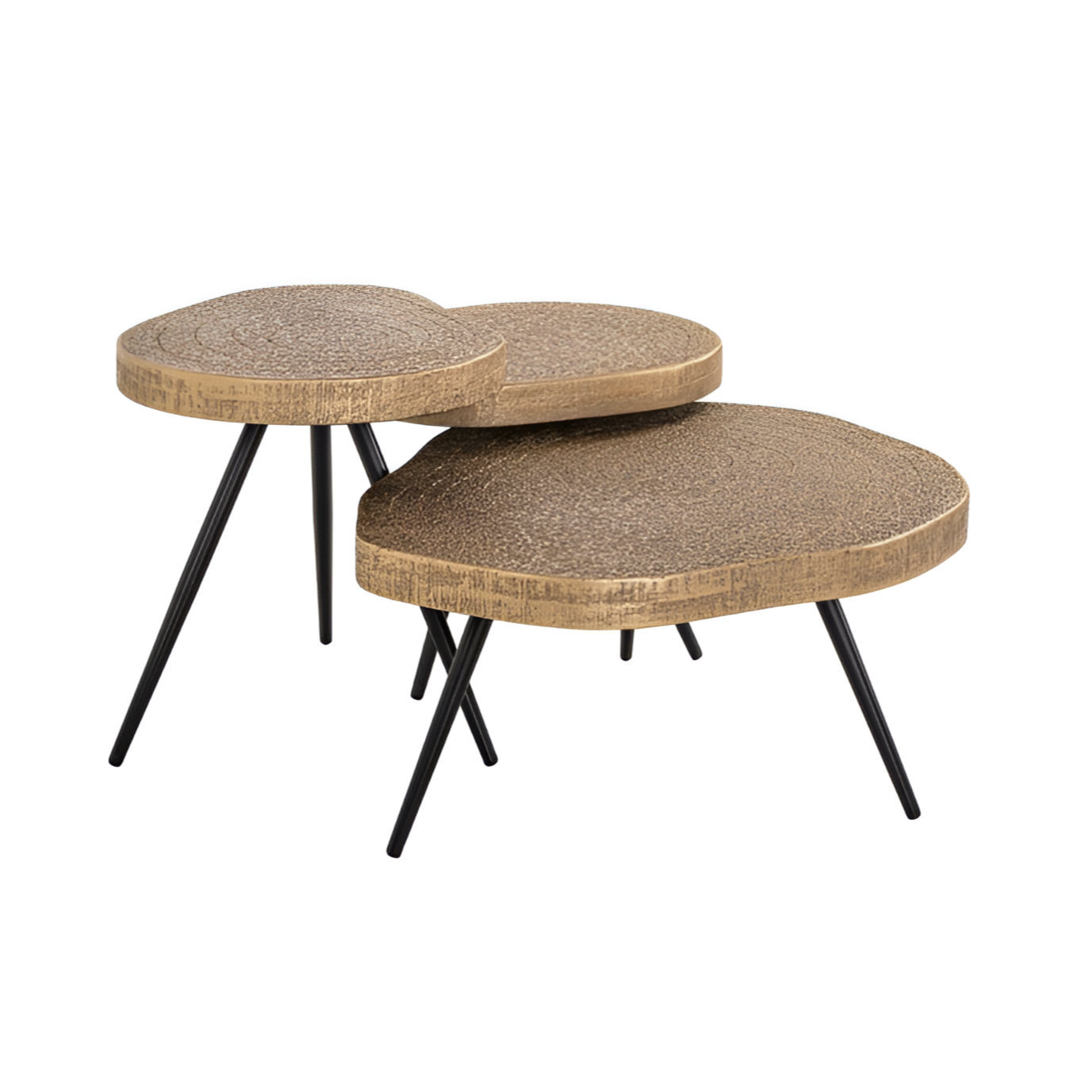Zestaw stolików kawowych SYMBA antyczny złoty z czarną podstawą