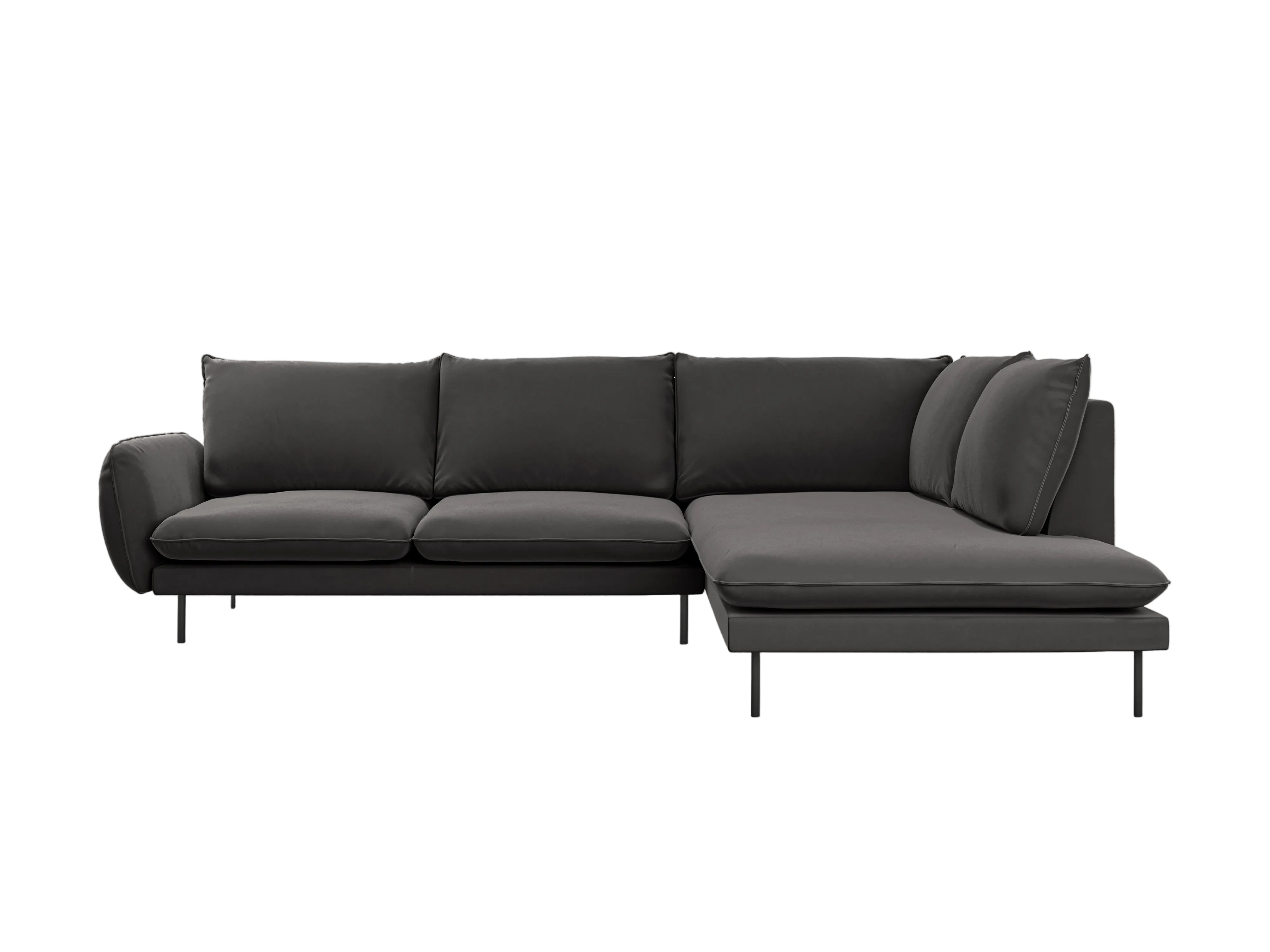 Narożnik aksamitny 6-osobowy prawostronny VIENNA czarny z czarną podstawą