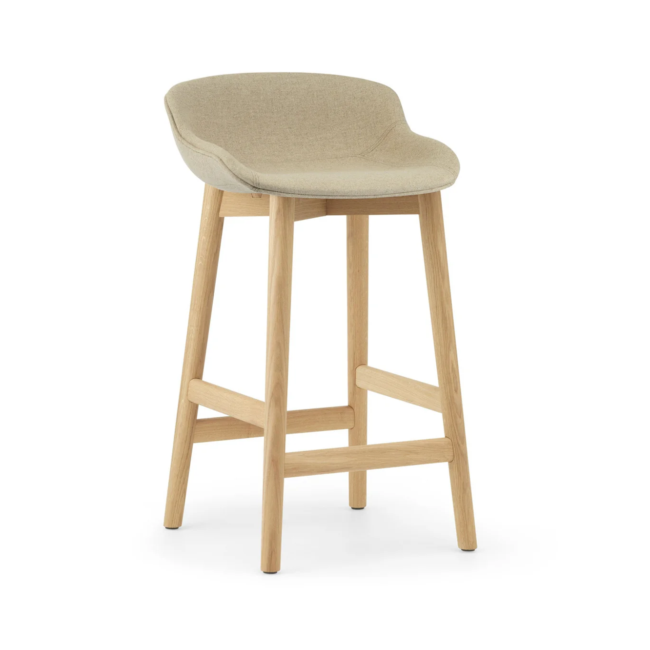 Čalouněné barové křeslo HYG pískové s dubovým podstavcem