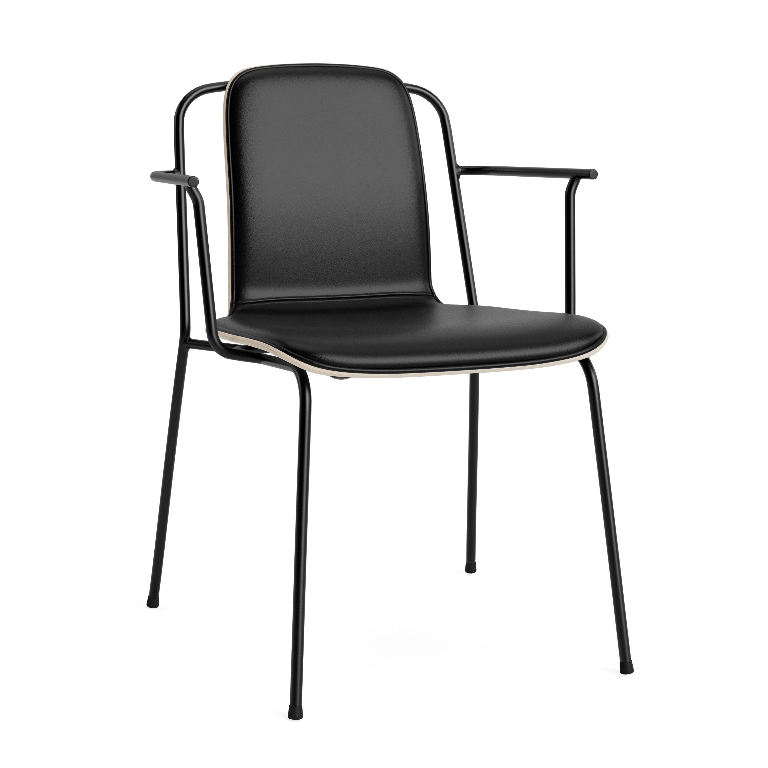 Krzesło z podłokietnikami STUDIO tapicerowany przód z fornirem dębowym i czarną podstawą