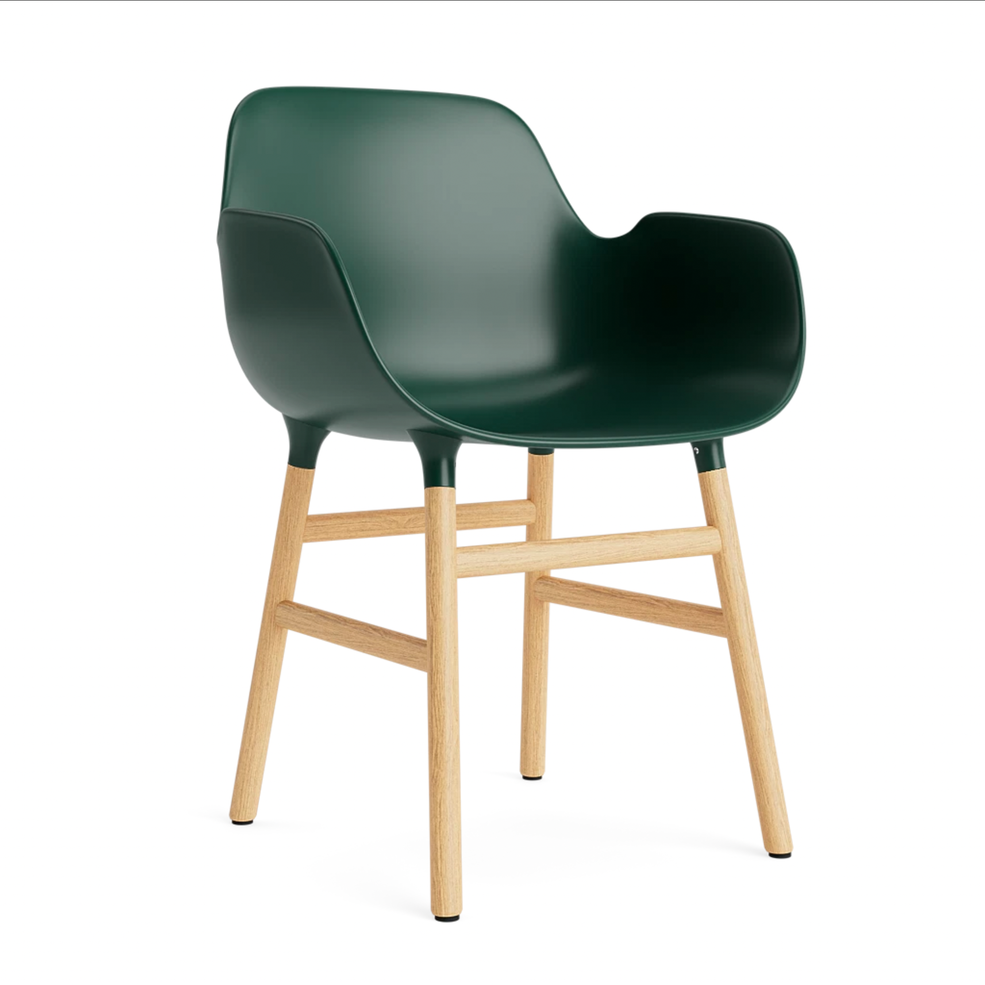 Křeslo s opěrkami FORM zelené s dubovým podstavcem