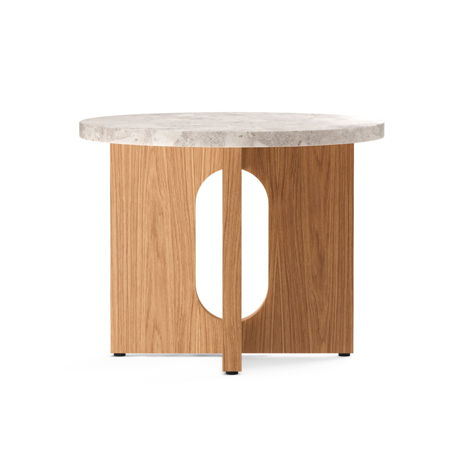 Bocní stolek ANDROGYNE bílý mramor s dubovým podstavcem