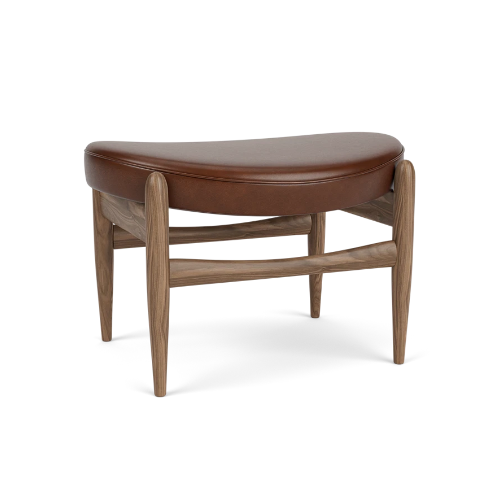 Podnóżek THE SEAL brązowa skóra z orzechową podstawą