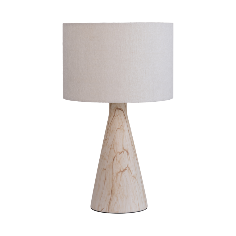 Stolní lampa TYRA s mramorovým podstavcem a lněným stínidlem