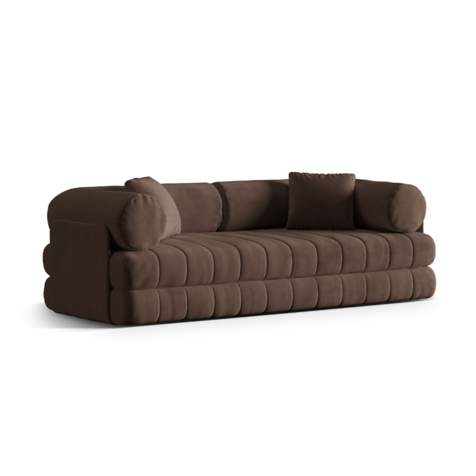 Chocolate 3-seater velvet sofa with sleeping function KEMI
