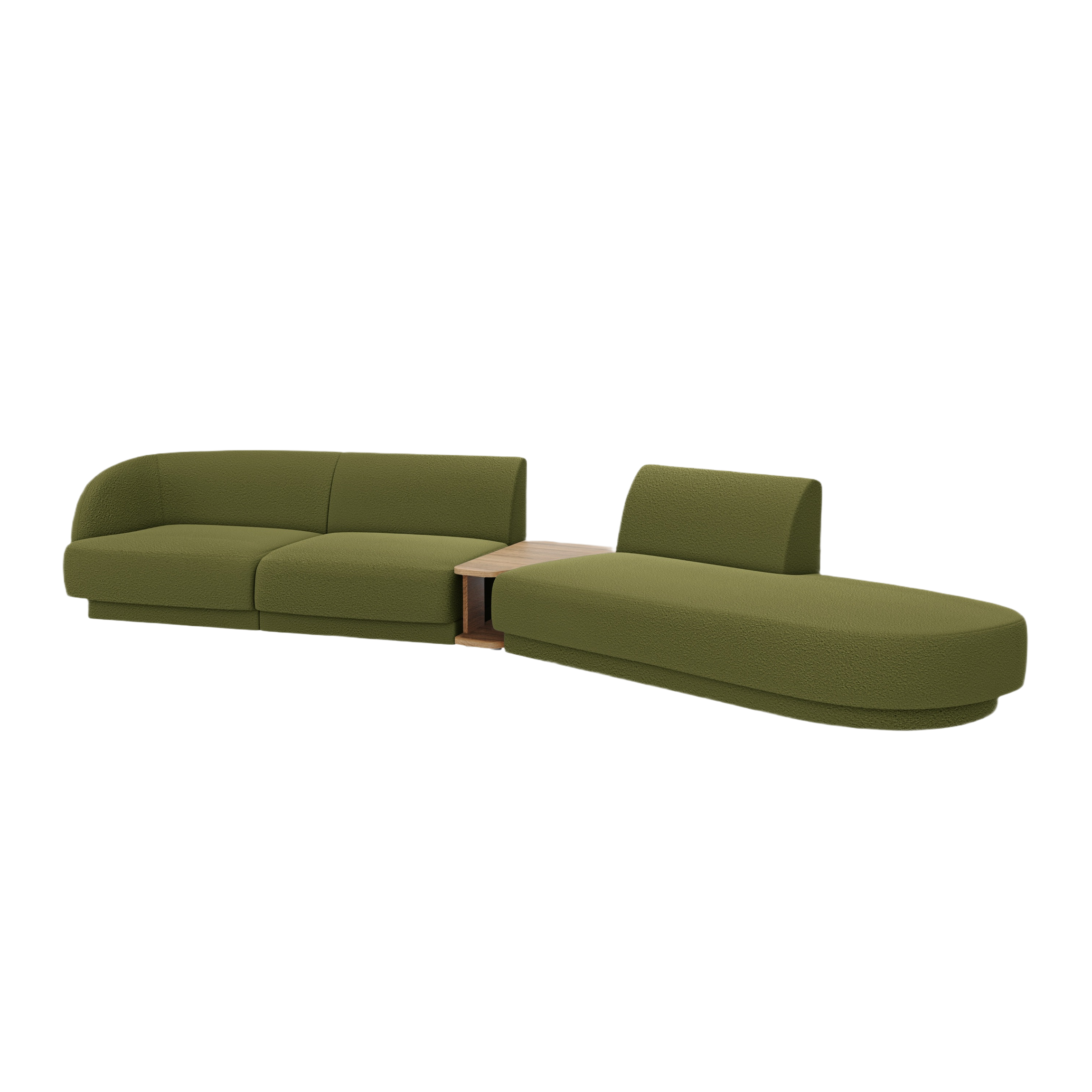Right-facing modular sofa with table for 4 people MILEY green boucle