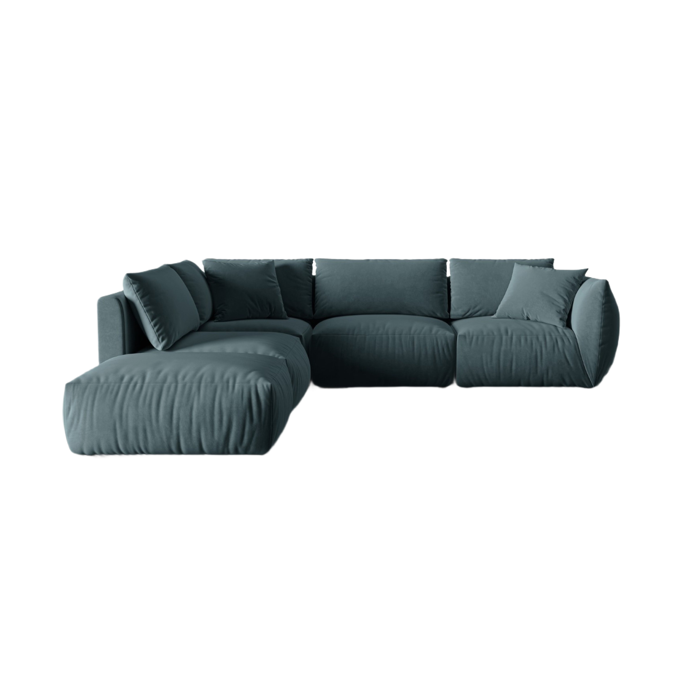 Velvet modular corner sofa for 4 people, left-sided, CHRIS in light blue