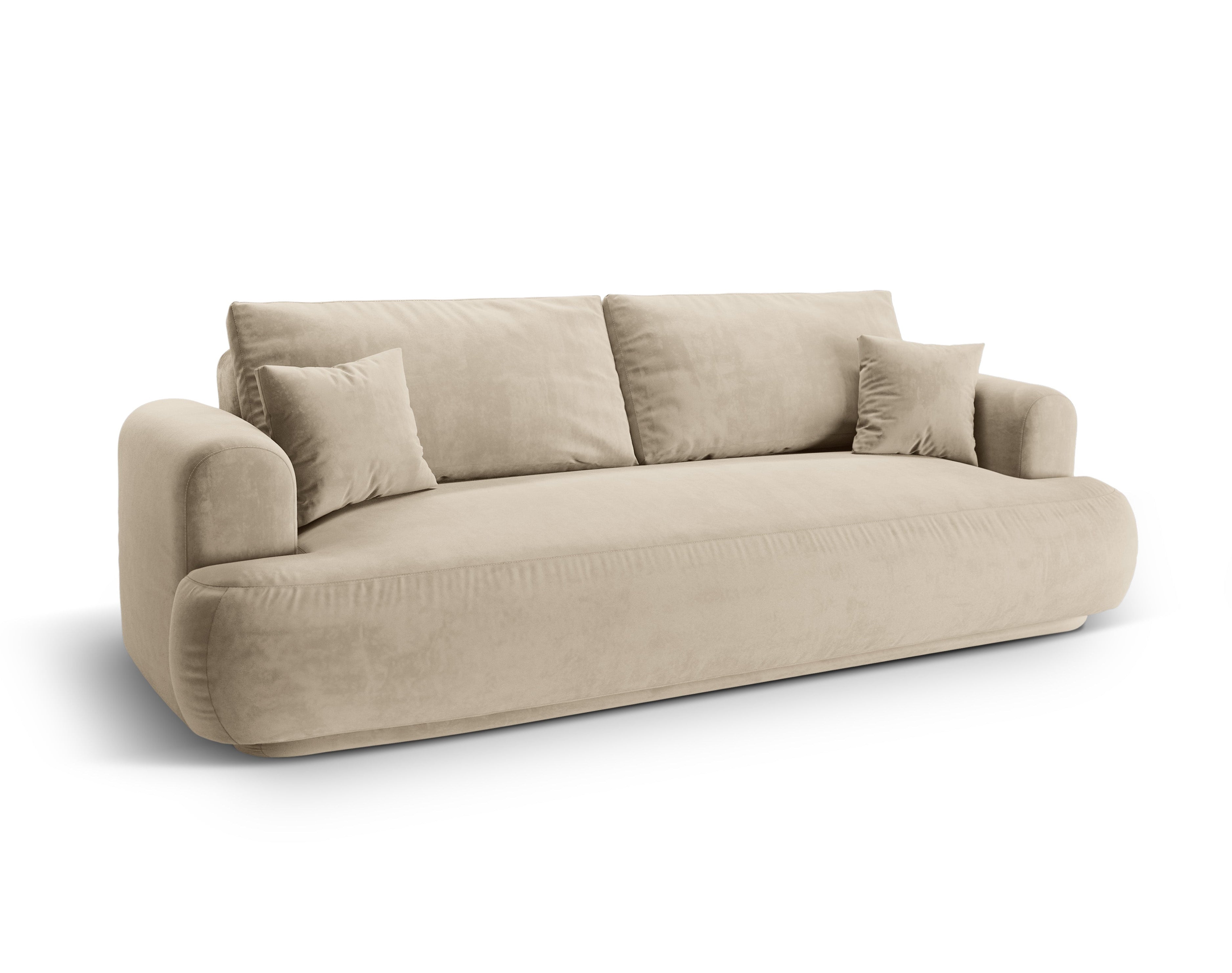 3-seater velvet sofa with sleeping function BALI light beige with black base