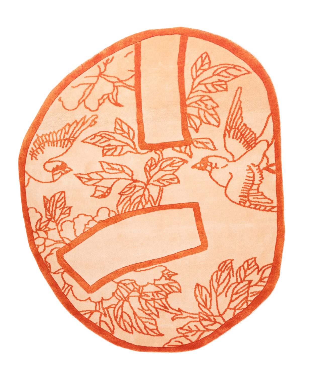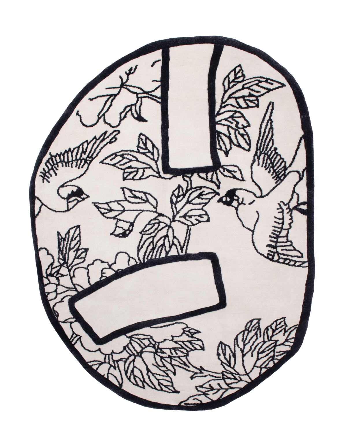 Asymmetrical decorative rug INTO THE FOLD black with beige