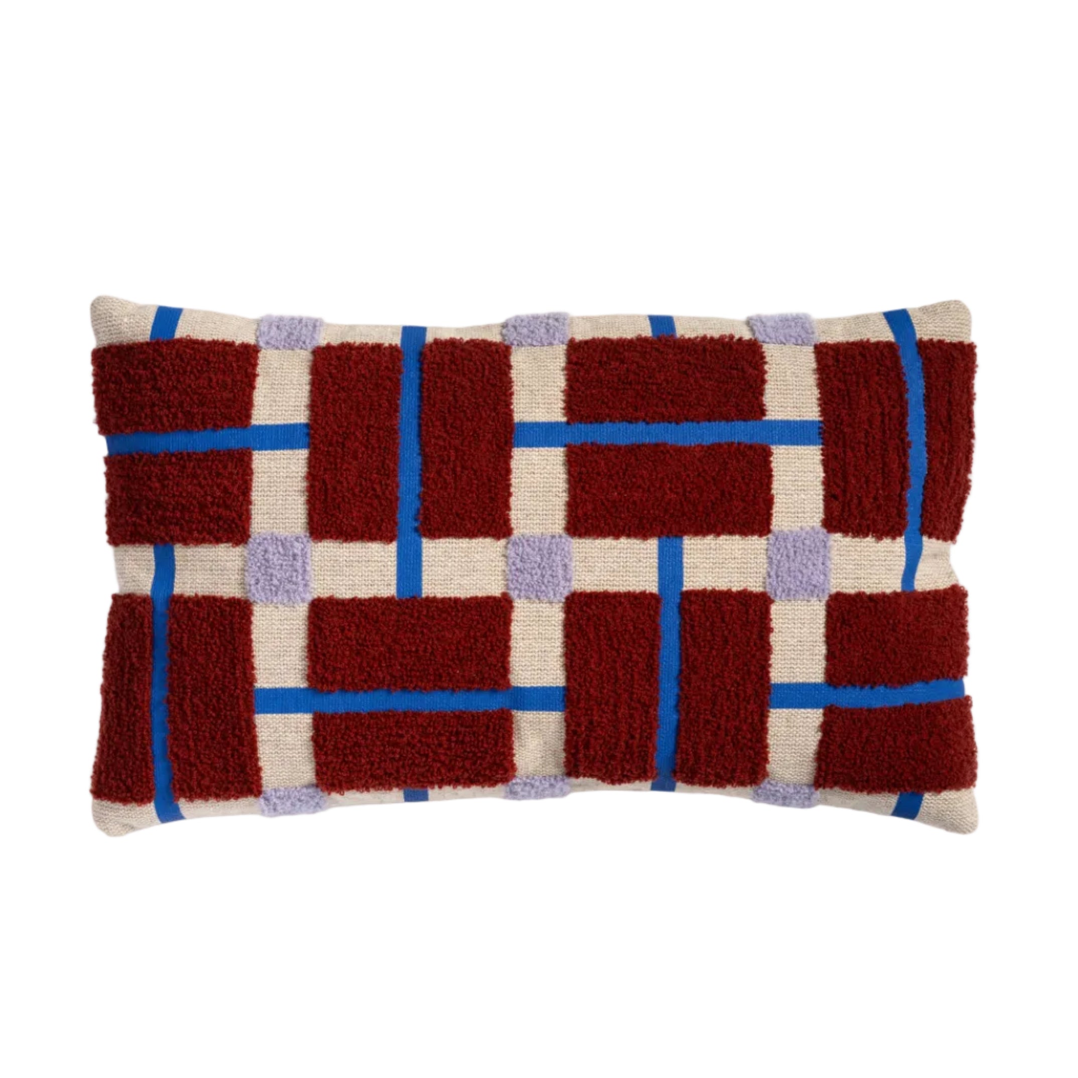 PLANO Cushion Cover Burgundy with Beige and Blue