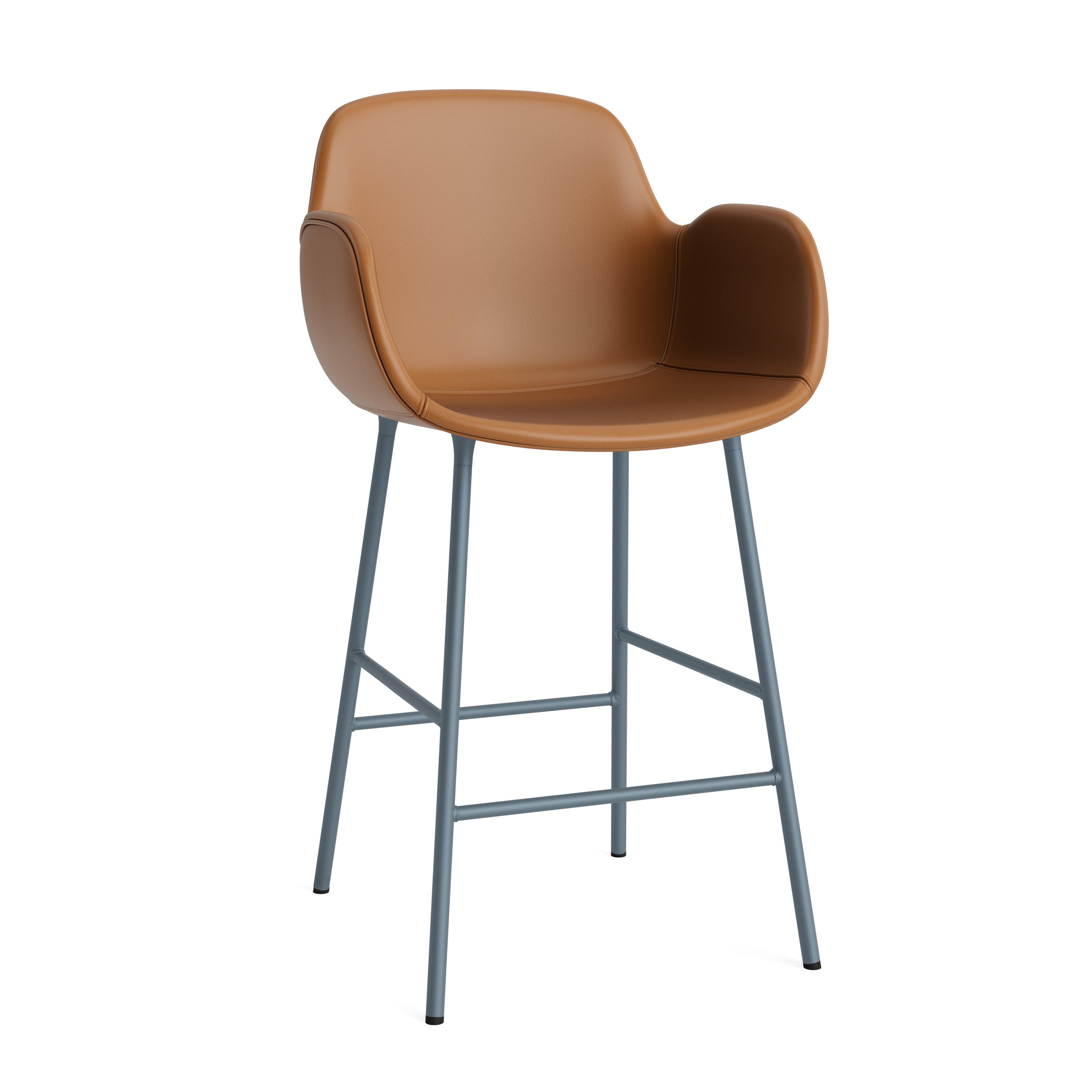Bar chair upholstered with armrests of forms with a gray base