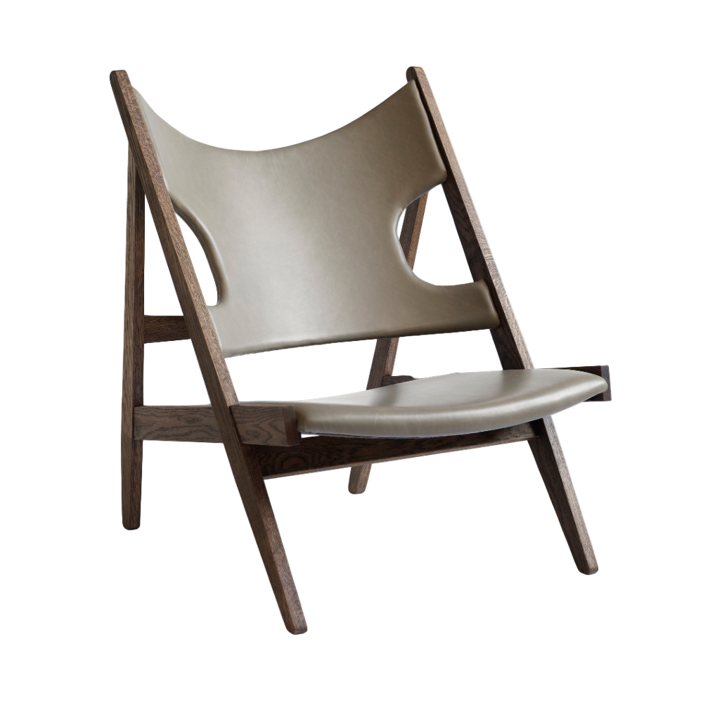 KNITTING armchair dark brown sheep leather with dark oak base