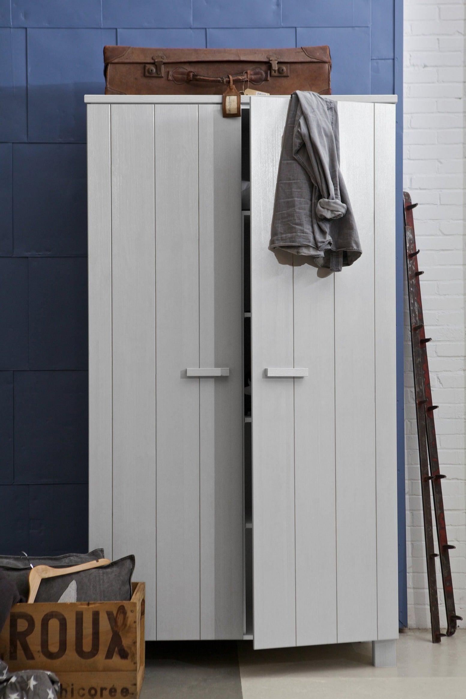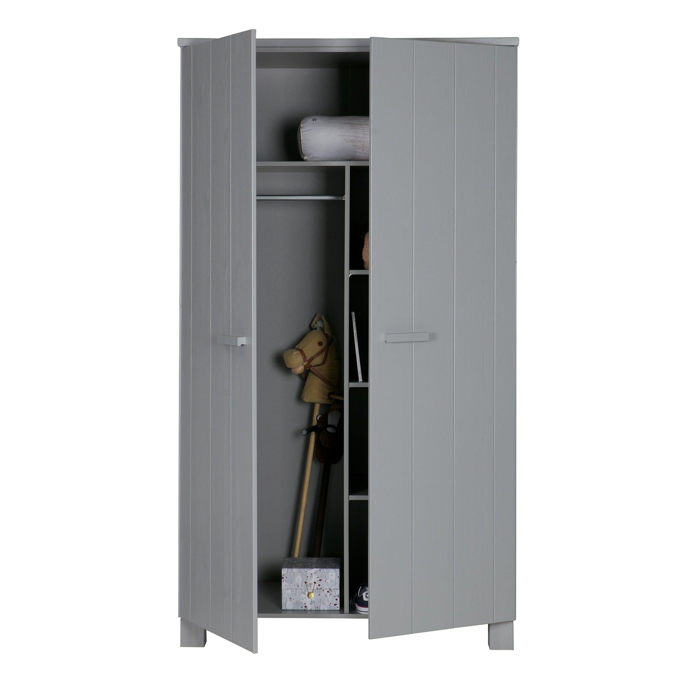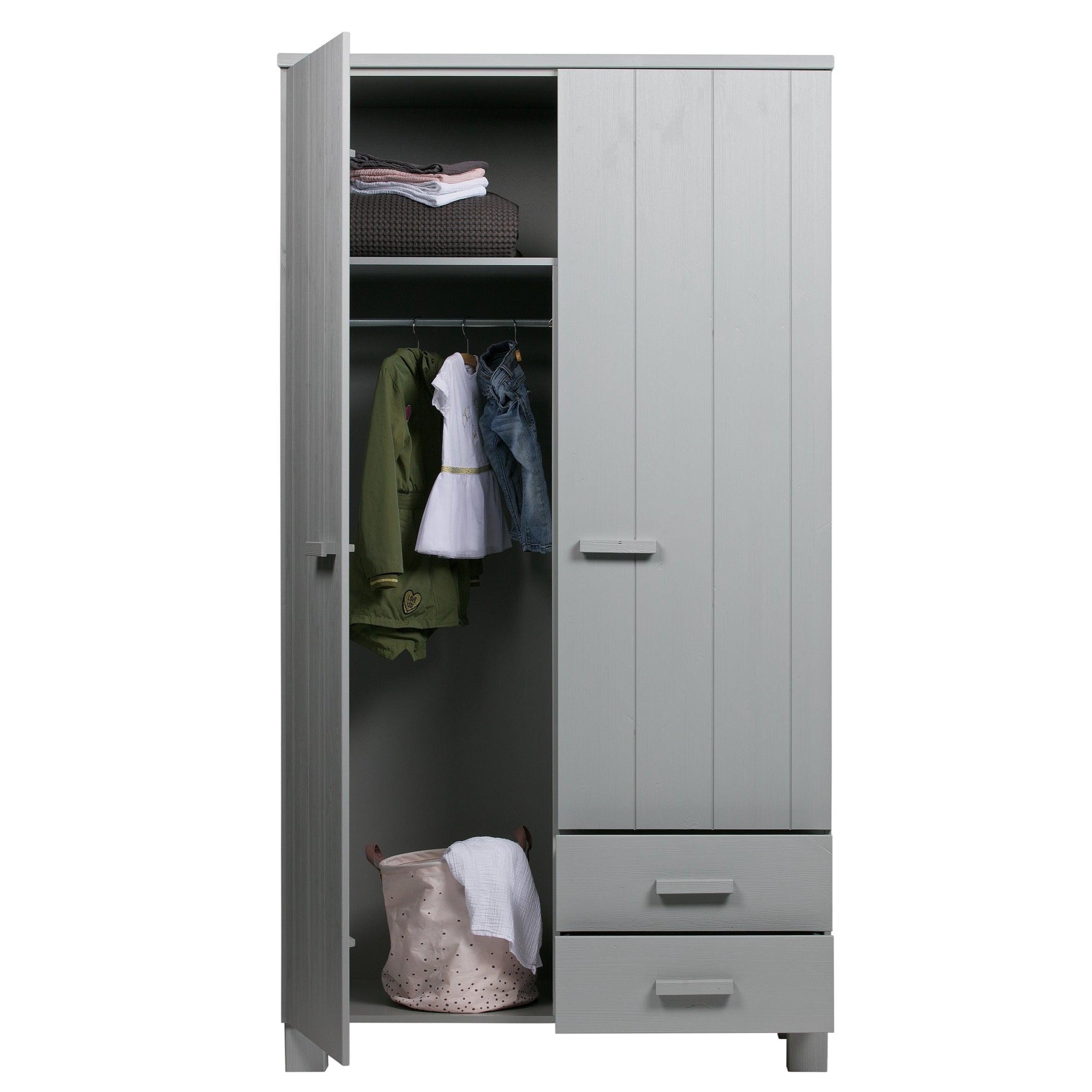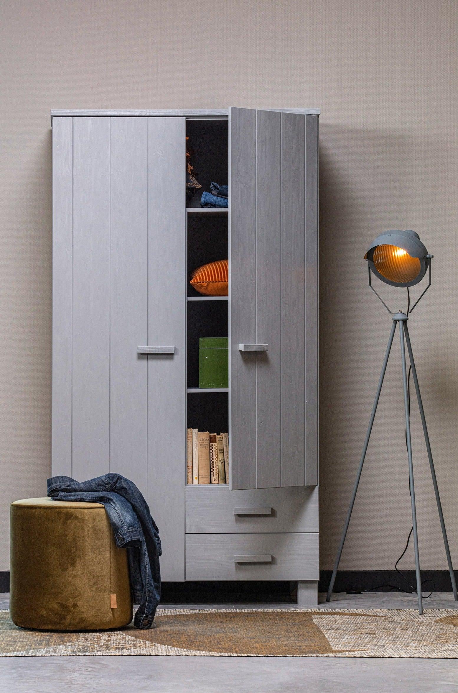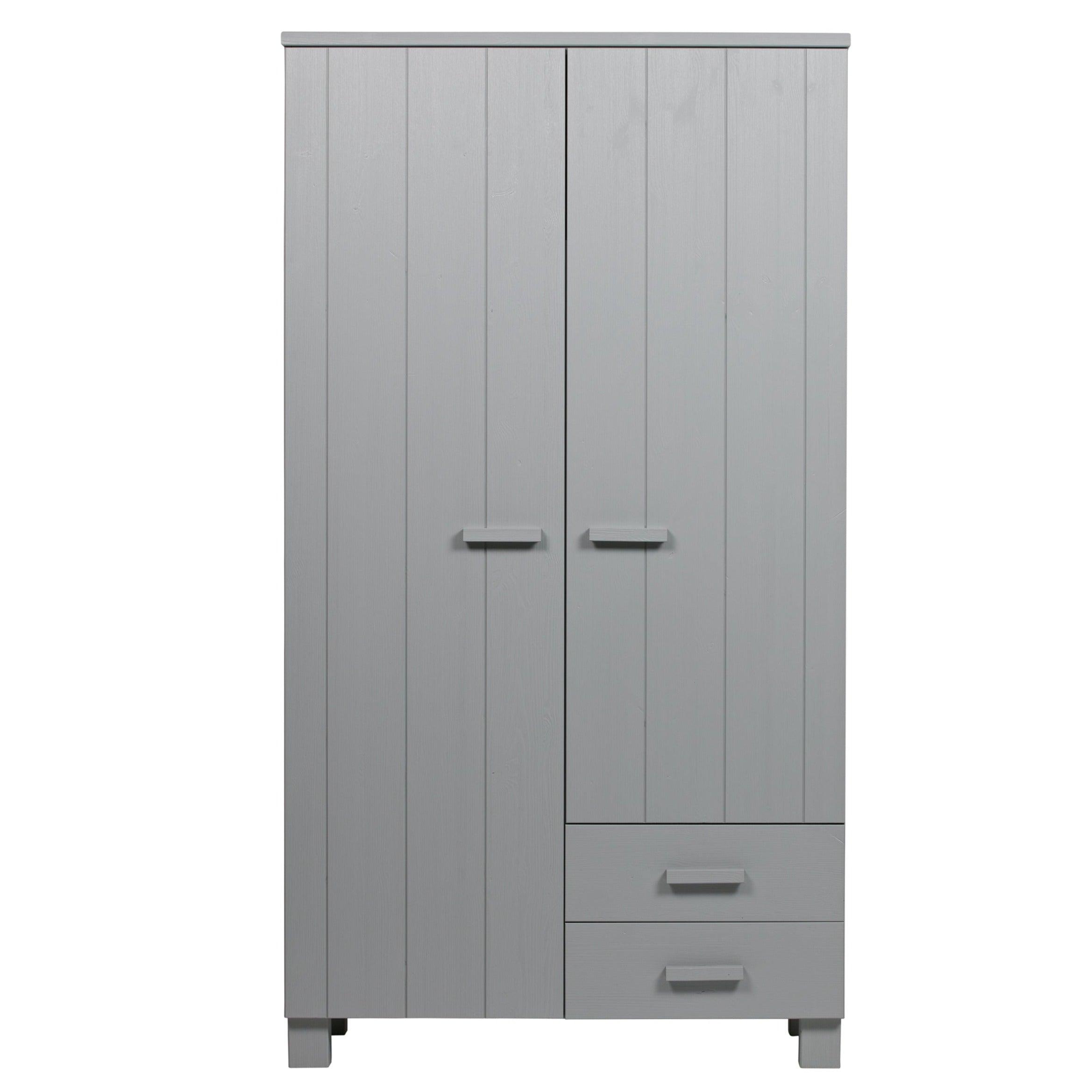 Gray wardrobe Dennis is made of pine wood, which ensures its longevity and durability. The two doors open easily, revealing a storage space that is spacious enough to hold everything you need - from clothes to bedding or towels. Additionally, the wardrobe can be equipped with two practical drawers that allow for even better organization and storage of small items.