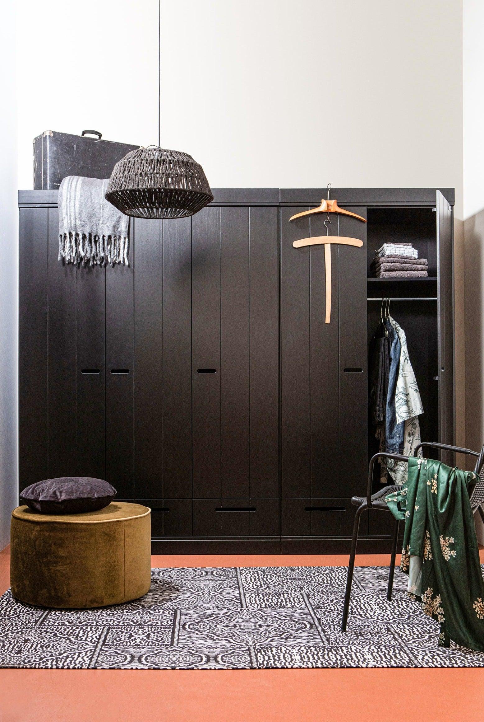 2-Door Wardrobe Connect with drawers in black is the perfect combination of simplicity, functionality, and Scandinavian style. Thanks to its compact size, it works wonderfully in smaller spaces, adding lightness and a breath of freshness.