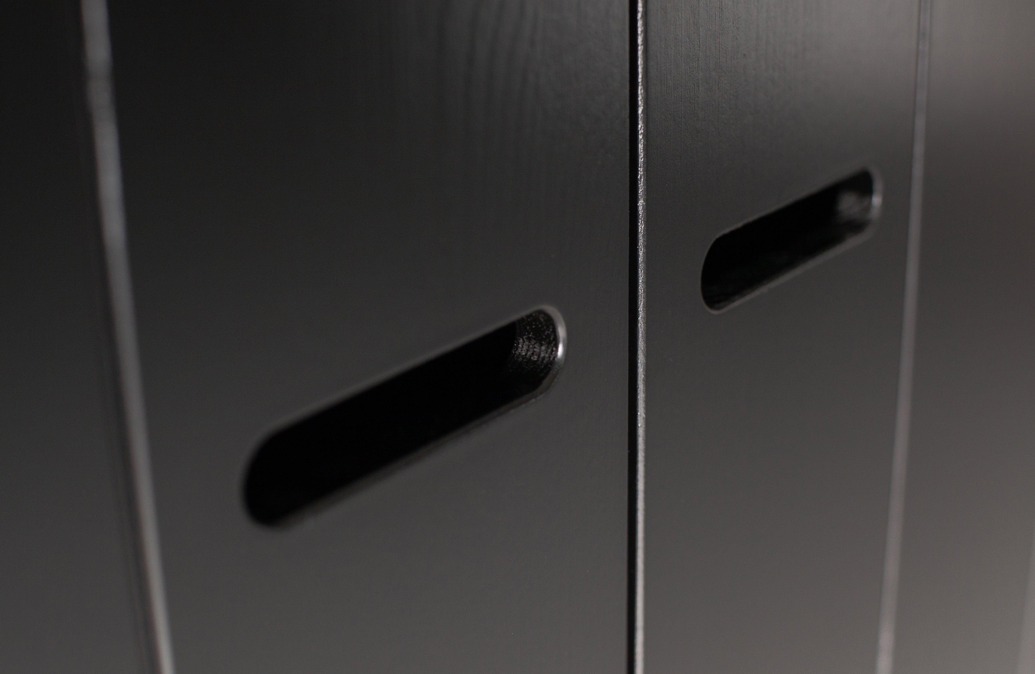 This wardrobe is not only practical but also aesthetic. The minimalist design, characterized by simple lines and clean forms, adds lightness and elegance to any space. The black color is universal and easily adapts to any interior style, from modern to traditional.