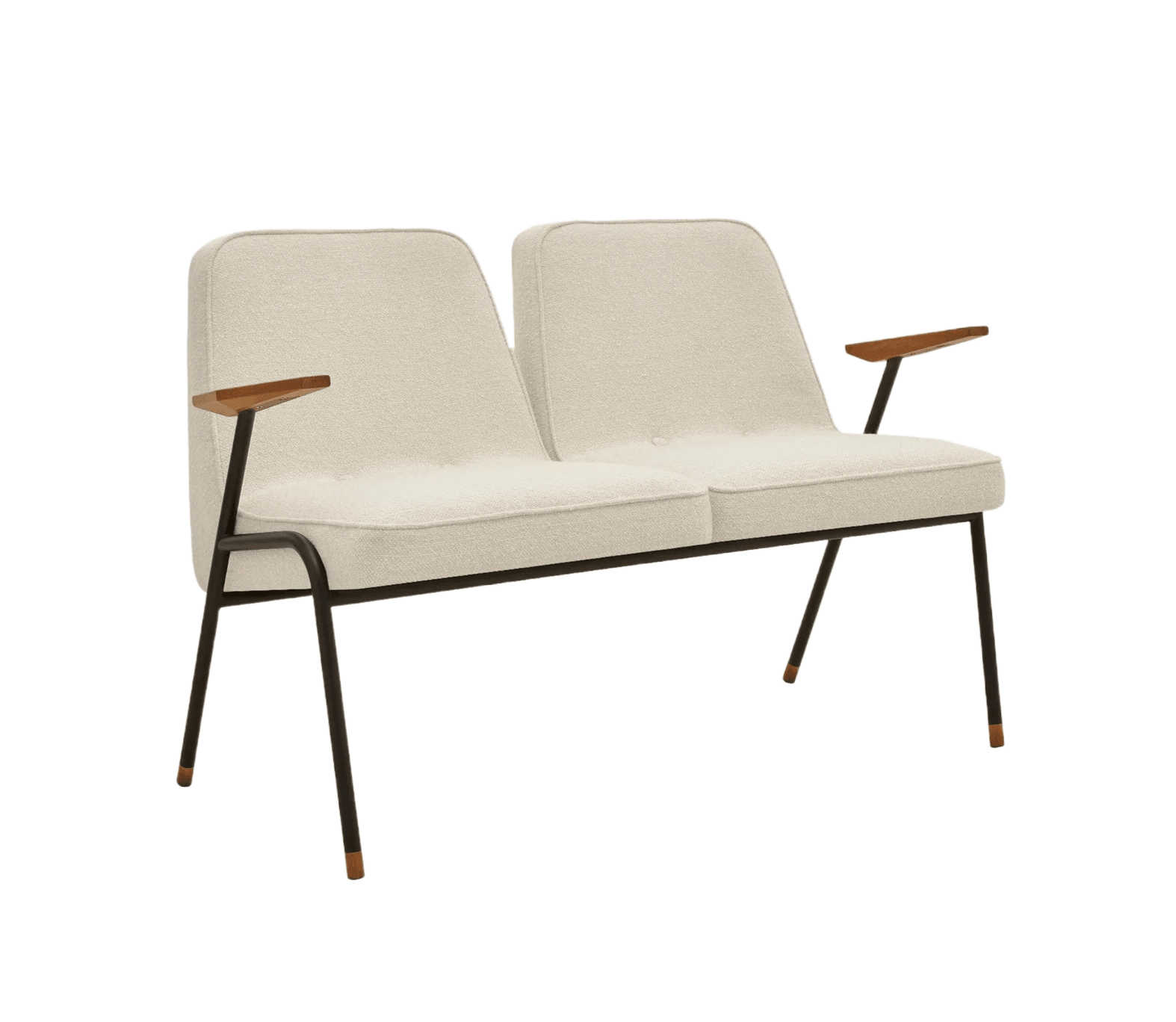 2-person sofa 366 beige metal in Boucle Creme fabric