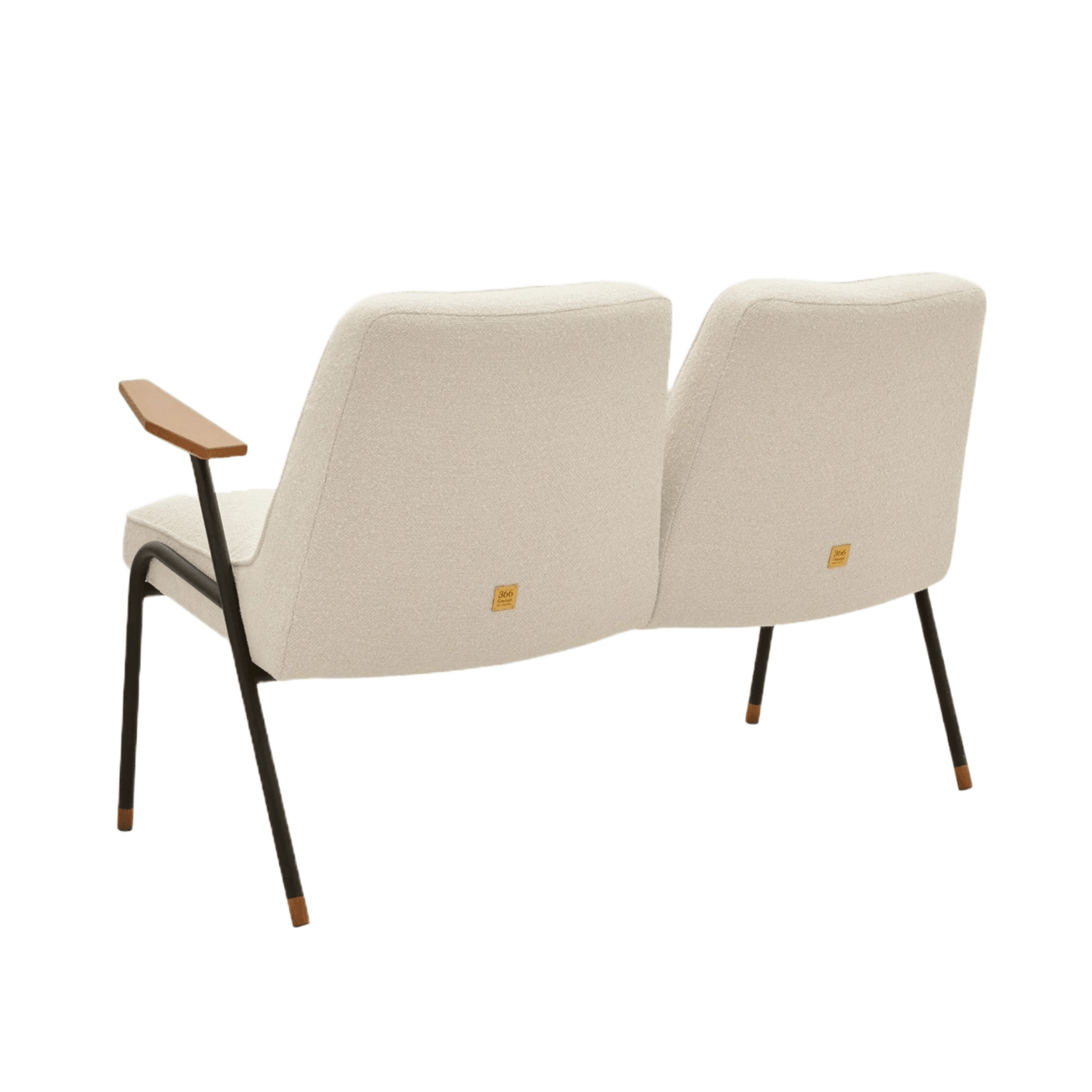 Sofa 366 Metal in the Boucle Creme fabric has been designed for a double rest, which will allow relaxation and rest for two. Its light form and unique shape will be complemented by interiors that require expressive, but not overwhelming furniture.