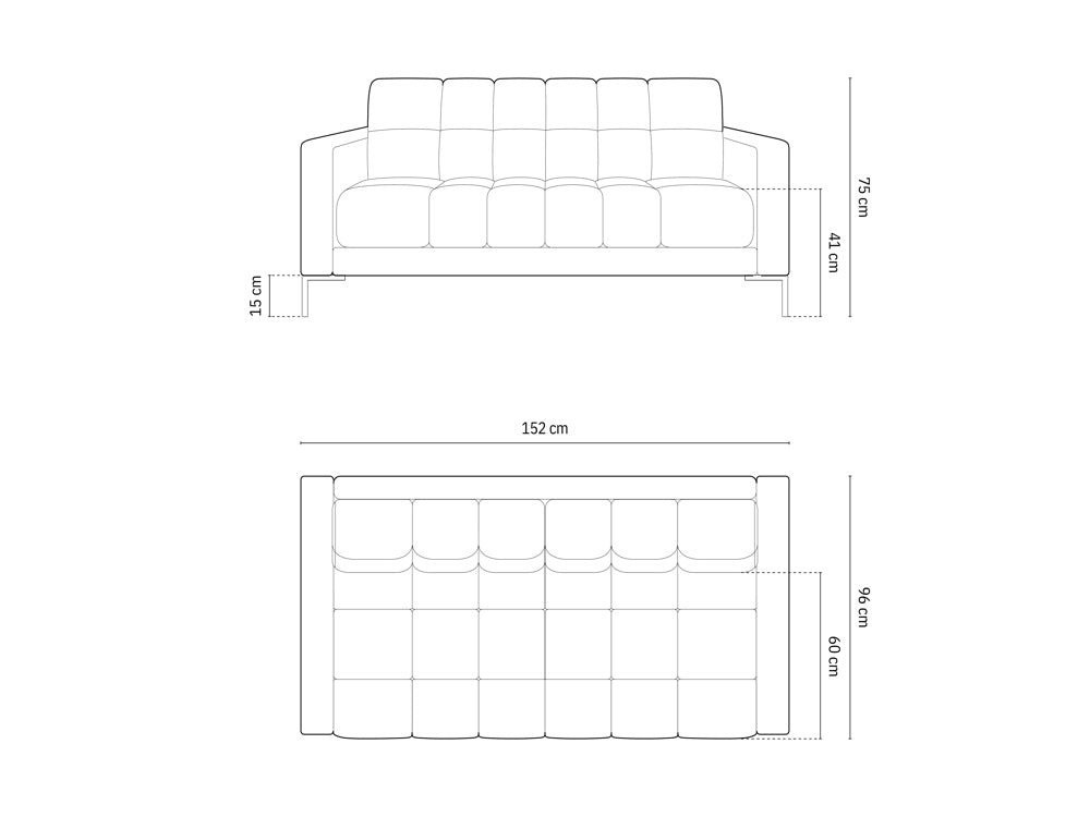 2-person velvet sofa, dark gray logs with a golden base