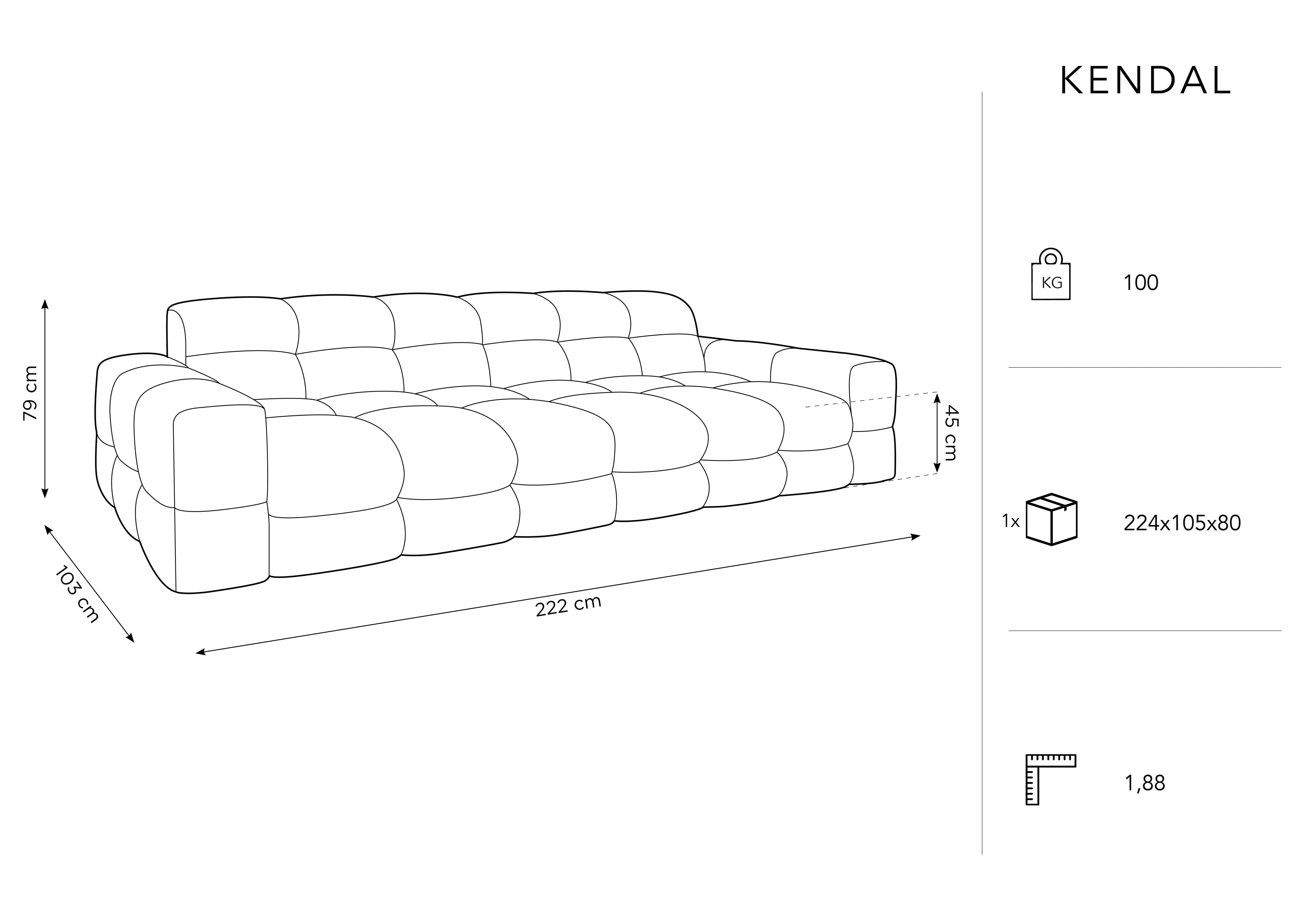 3-seater velvet sofa kendal gray