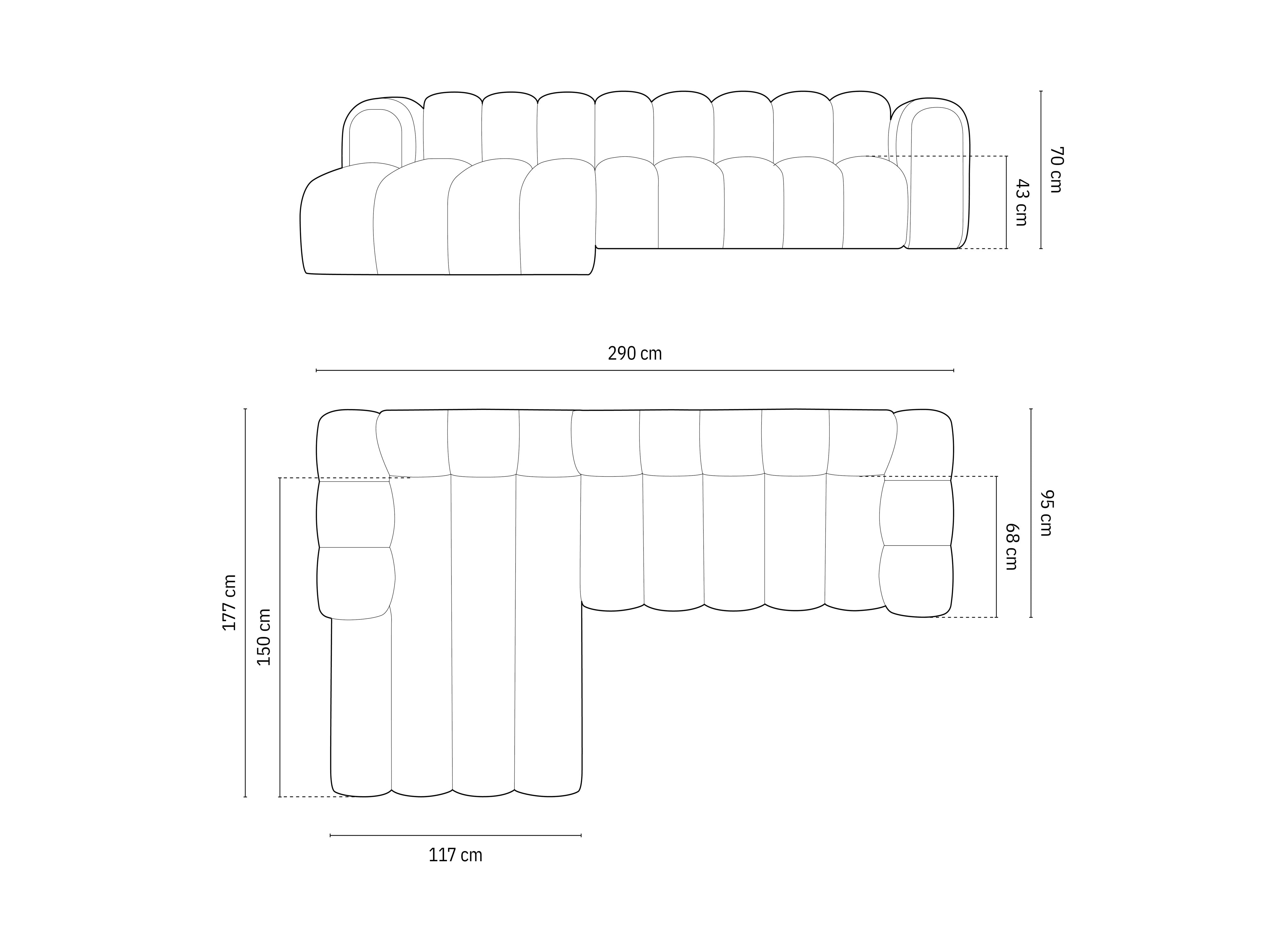 Designed with elegant interiors in mind, the Lupine corner sofa delights with its aesthetic appearance and attention to detail. Carefully selected noble materials, harmonious lines, and beautifully crafted finishes create a unique combination of luxury and chic, reminiscent of the atmosphere of sophisticated Parisian apartments. Allow yourself a moment of relaxation in the presence of truly elegant design with the Lupine corner sofa.