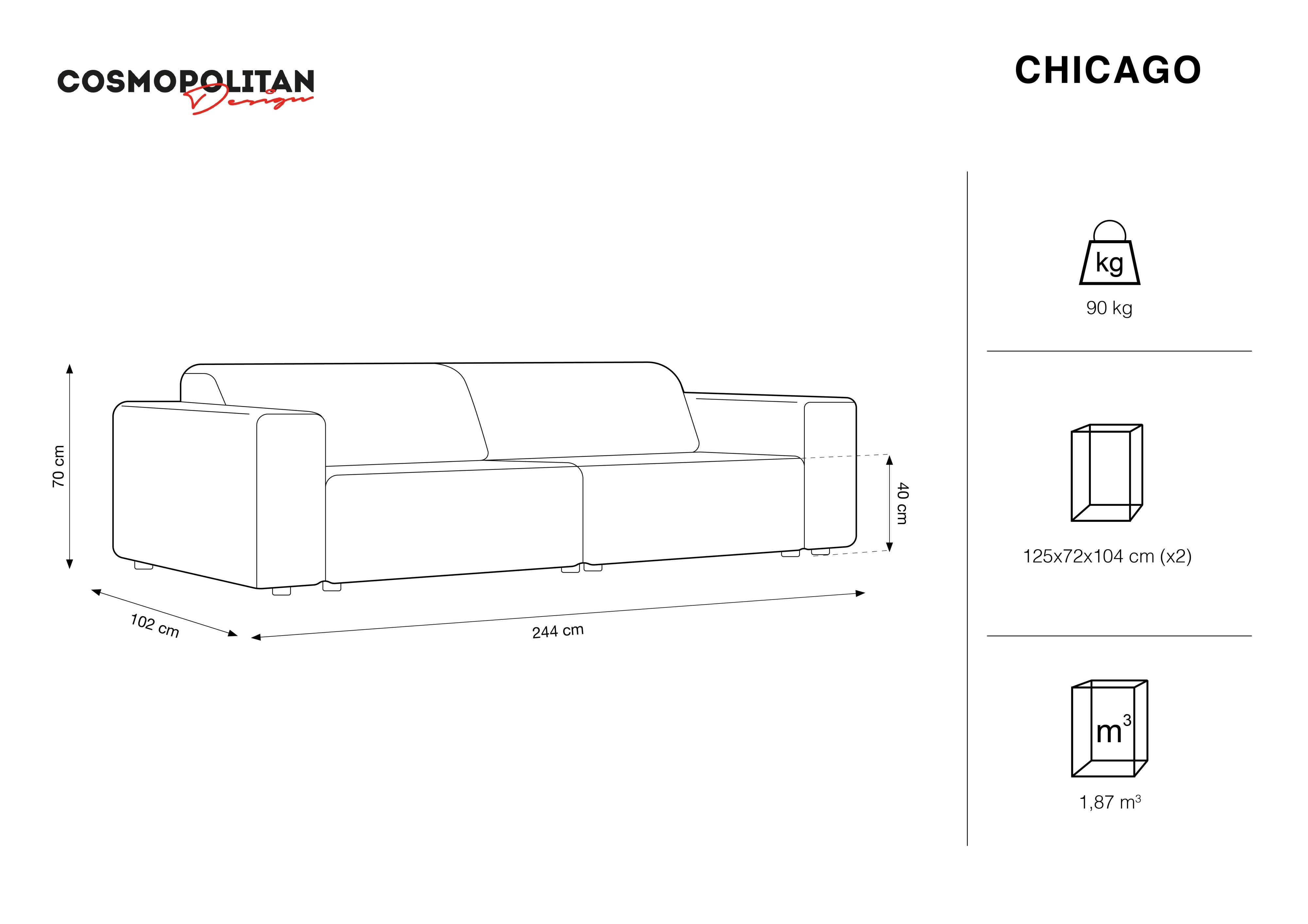 Sofa for four people The Chicago features an exceptional design, where gently tufted seats and numerous stitching on the backs give the whole a refined appearance. The low, expansive shape exudes extraordinary elegance, perfectly highlighting the style of the living room. The springy, deep seats with ample padding guarantee not only comfort but also complete relaxation after a long day.