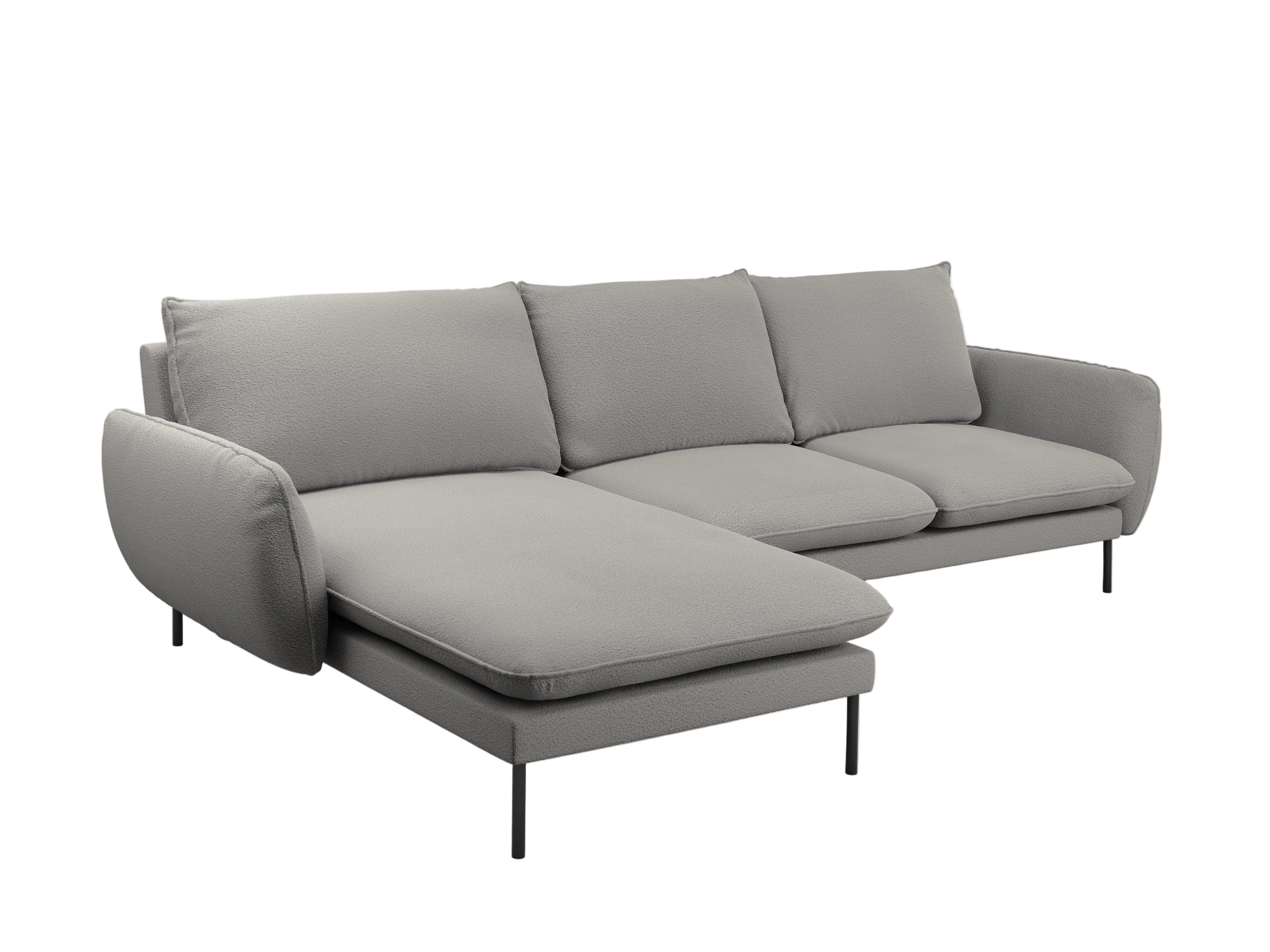 Left-facing corner sofa for 5 people VIENNA in gray boucle with a black base