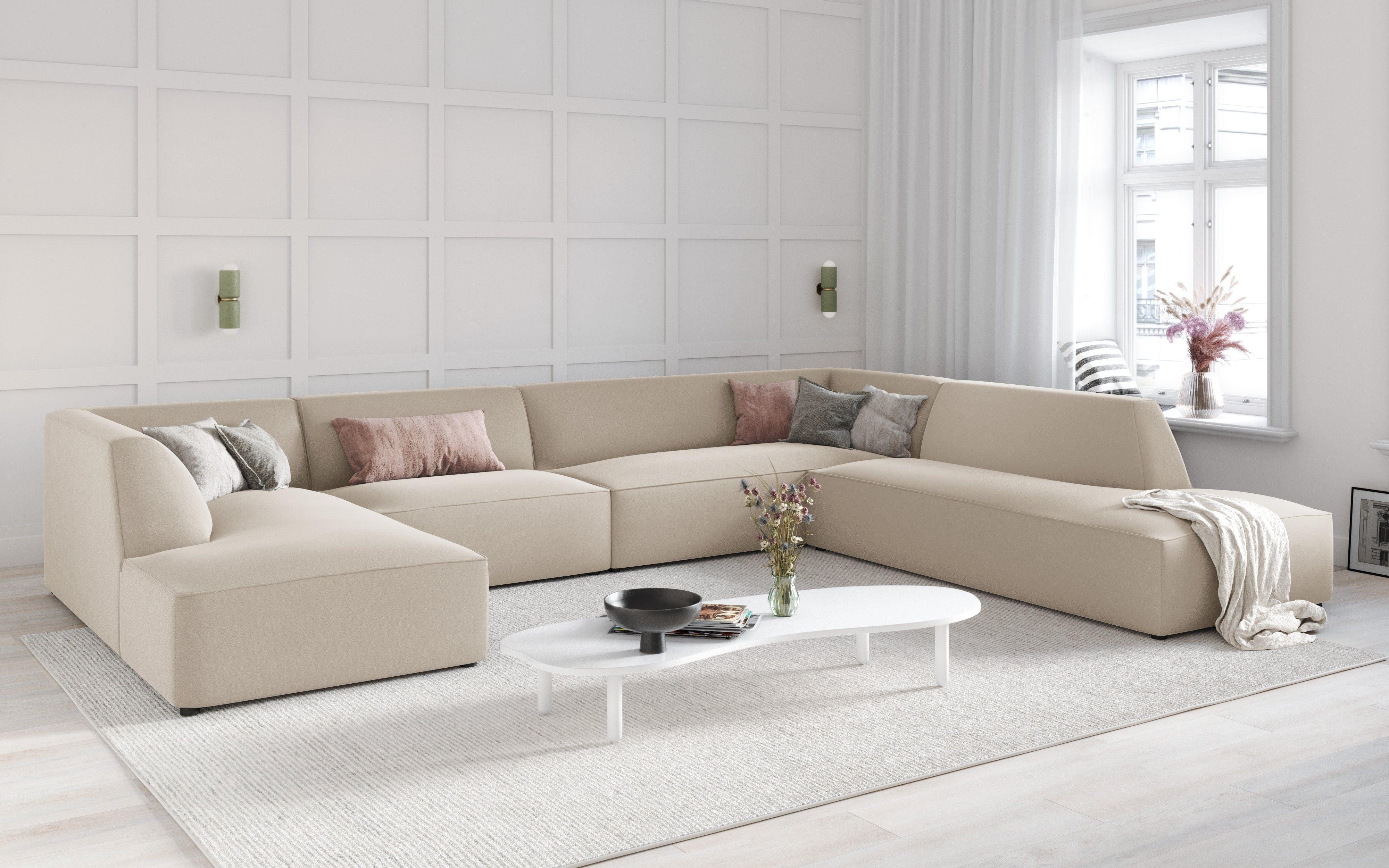 Narożnik w kształcie U aksamitny prawostronny RUBY beżowy Micadoni    Eye on Design