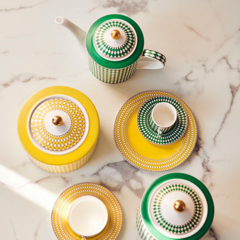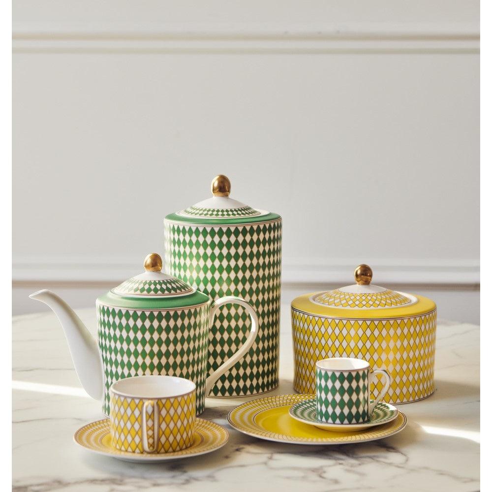 Cups for espresso Chess are an essential element of your kitchen that will make your morning coffee taste even better. The use of matte, glazed porcelain with matte gold accents not only enhances the appearance of the cups but also their quality. The set includes four cups complete with saucers. The combination of vibrant colors adds character to the set, while the well-planned design directly translates into product appeal.
