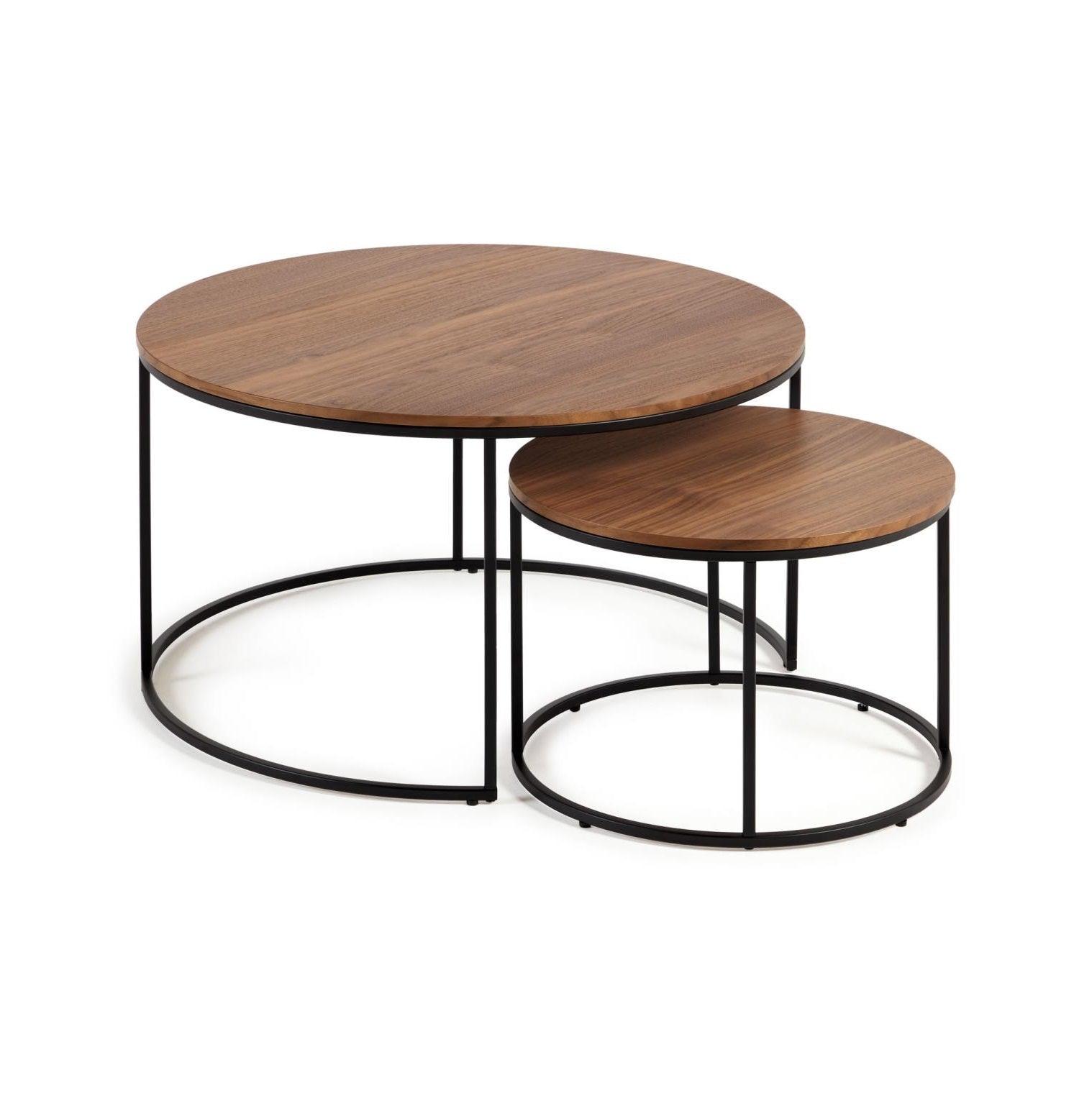 Zestaw okrągłych stolików bocznych YOANA fornir orzechowy z czarną podstawą La Forma    Eye on Design