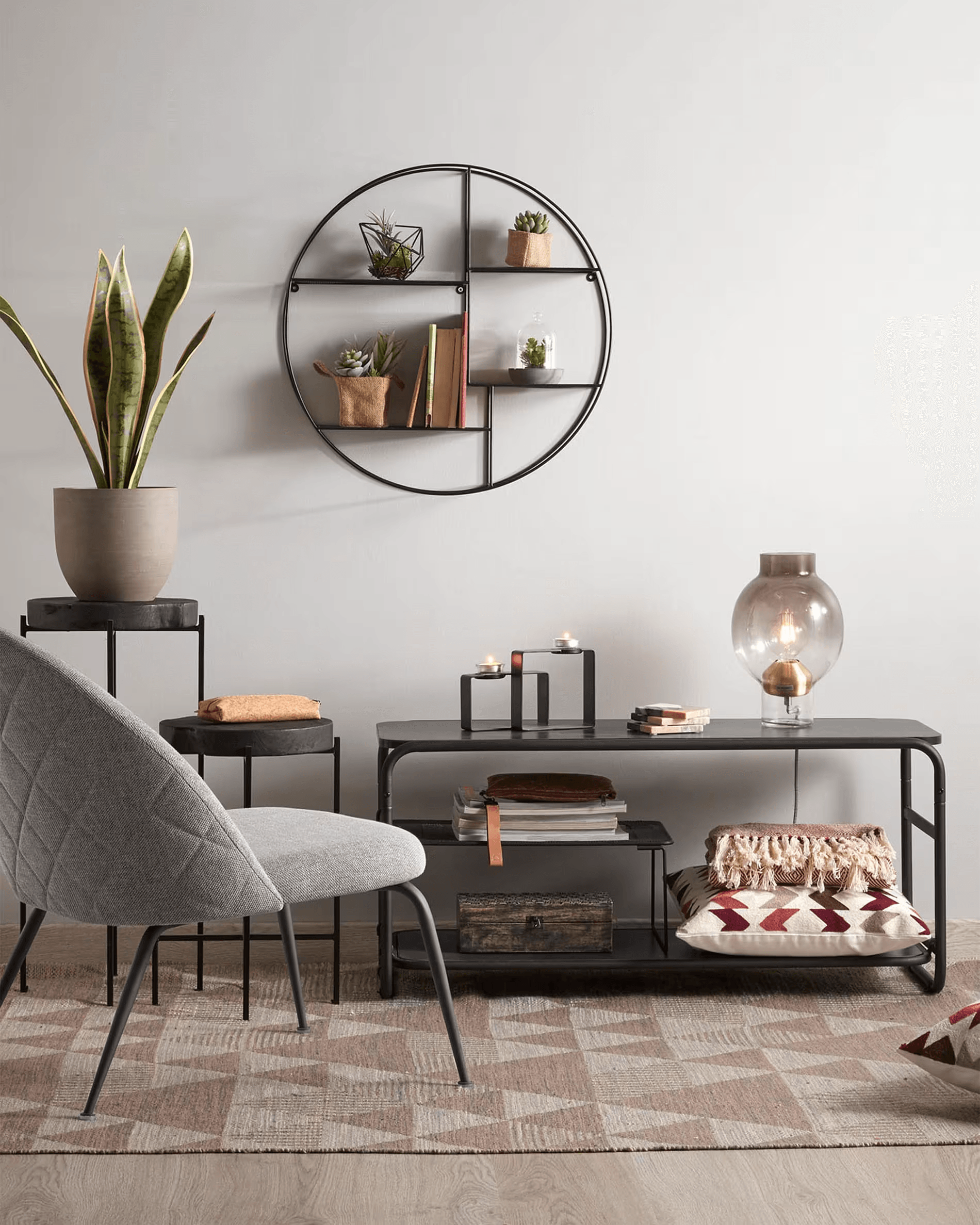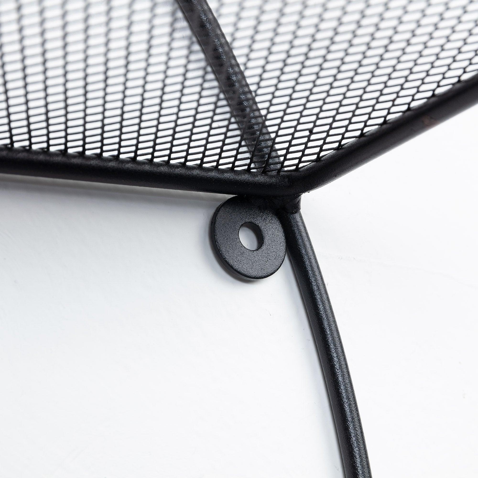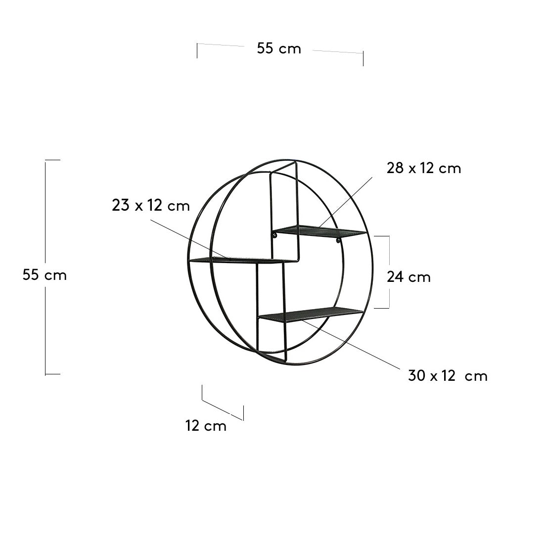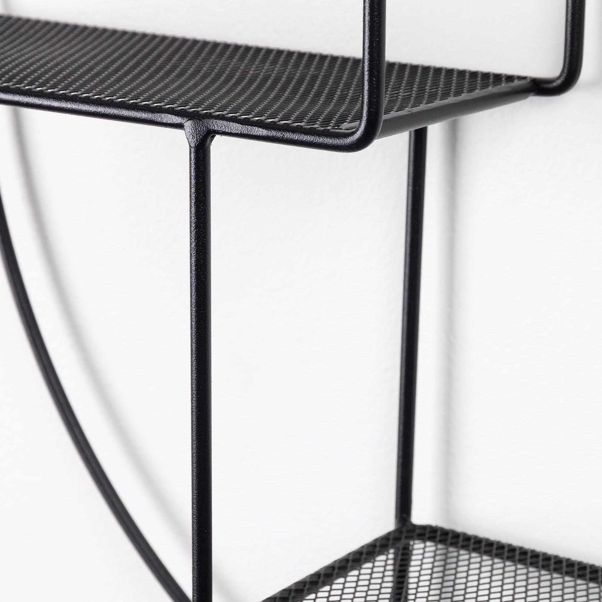 Across black hanging shelf