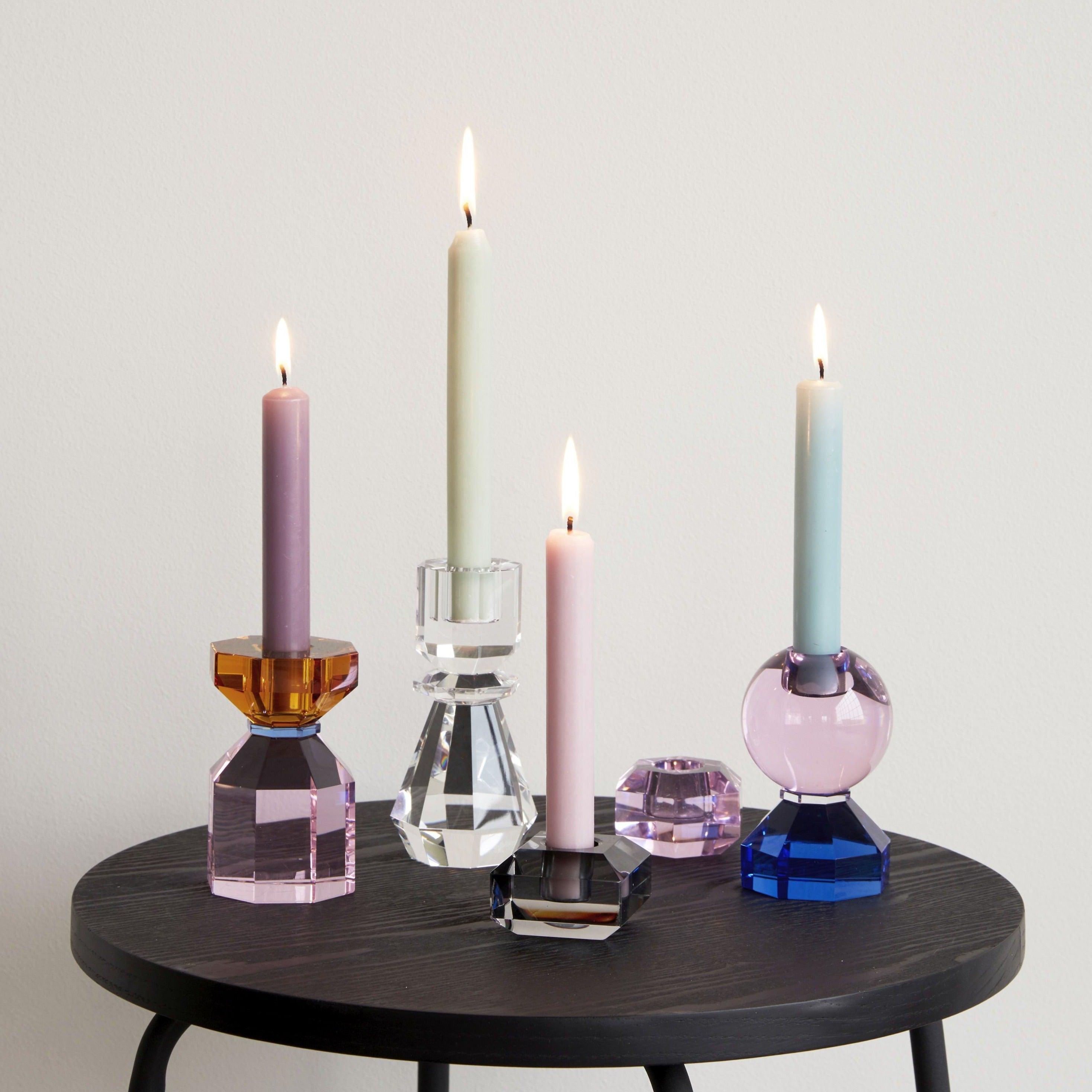 Świecznik GEM bursztynowy z różową podstawą Hübsch    Eye on Design