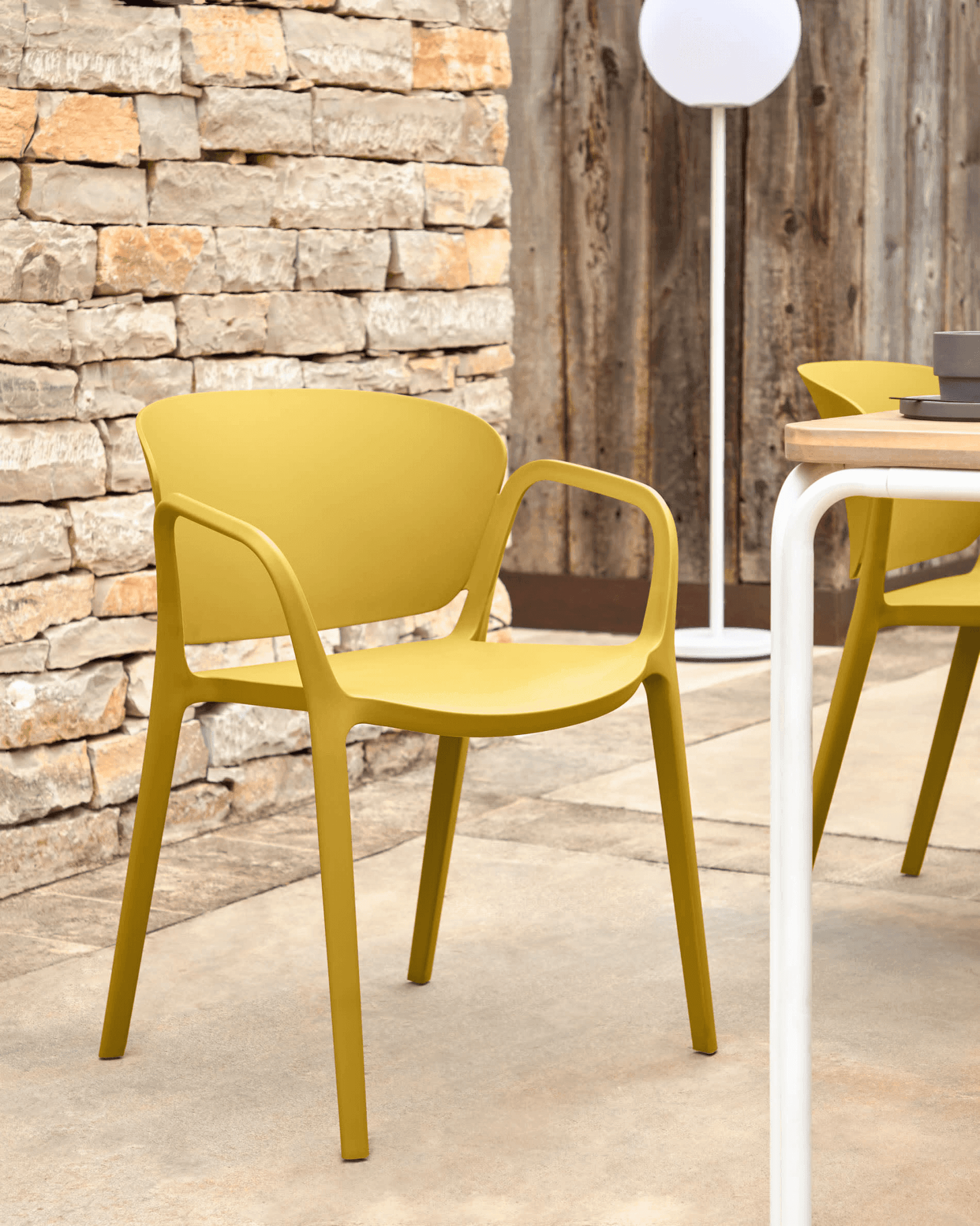 Design yellow chairs Ania was carefully designed to harmoniously fit into various arrangements. They will add elegance and modernity to your terrace, garden or patio, but they will also work well in the interior, giving them a unique character.
