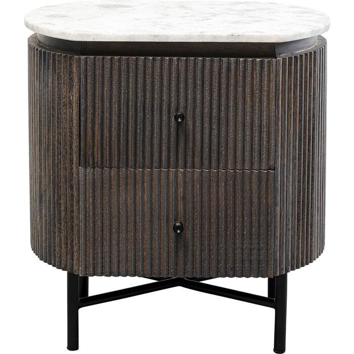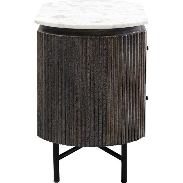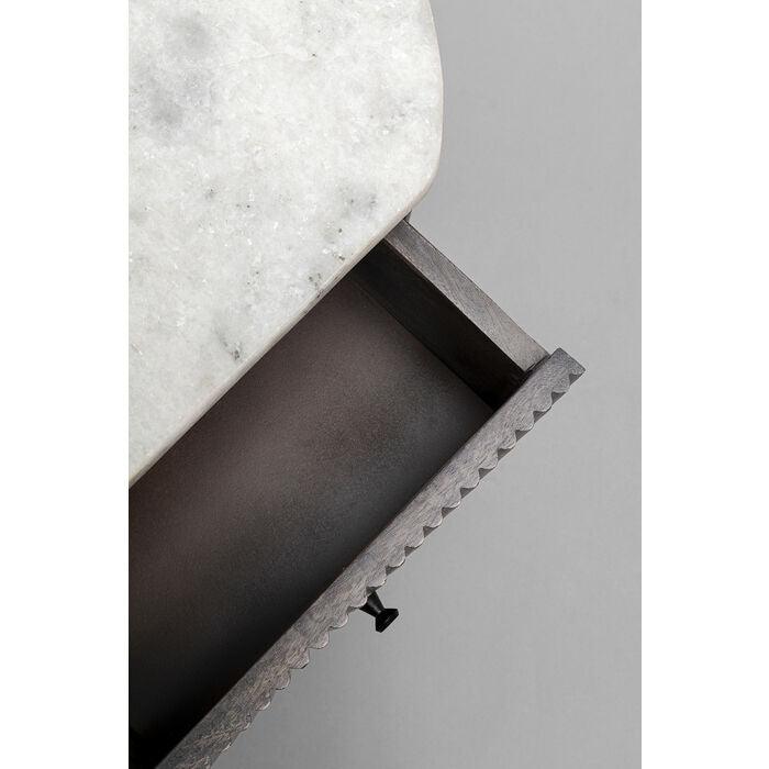 The Glenn furniture collection has been designed for contrasts. Smooth, velvety surfaces are intertwined with nourished textures. Light marble gives this dresser with two large drawers an extremely elegant character. Wood, covered with varnish and enamel, is protected, and at the same time its living structure, typical for mango wood, is emphasized. Cabinet, although extremely functional, also impresses with its luxurious and high -quality appearance.