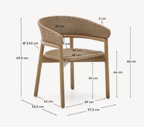 Arinella external chair solid acacia wood with a beige rope