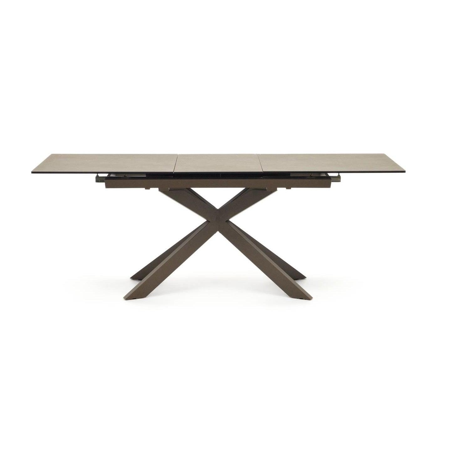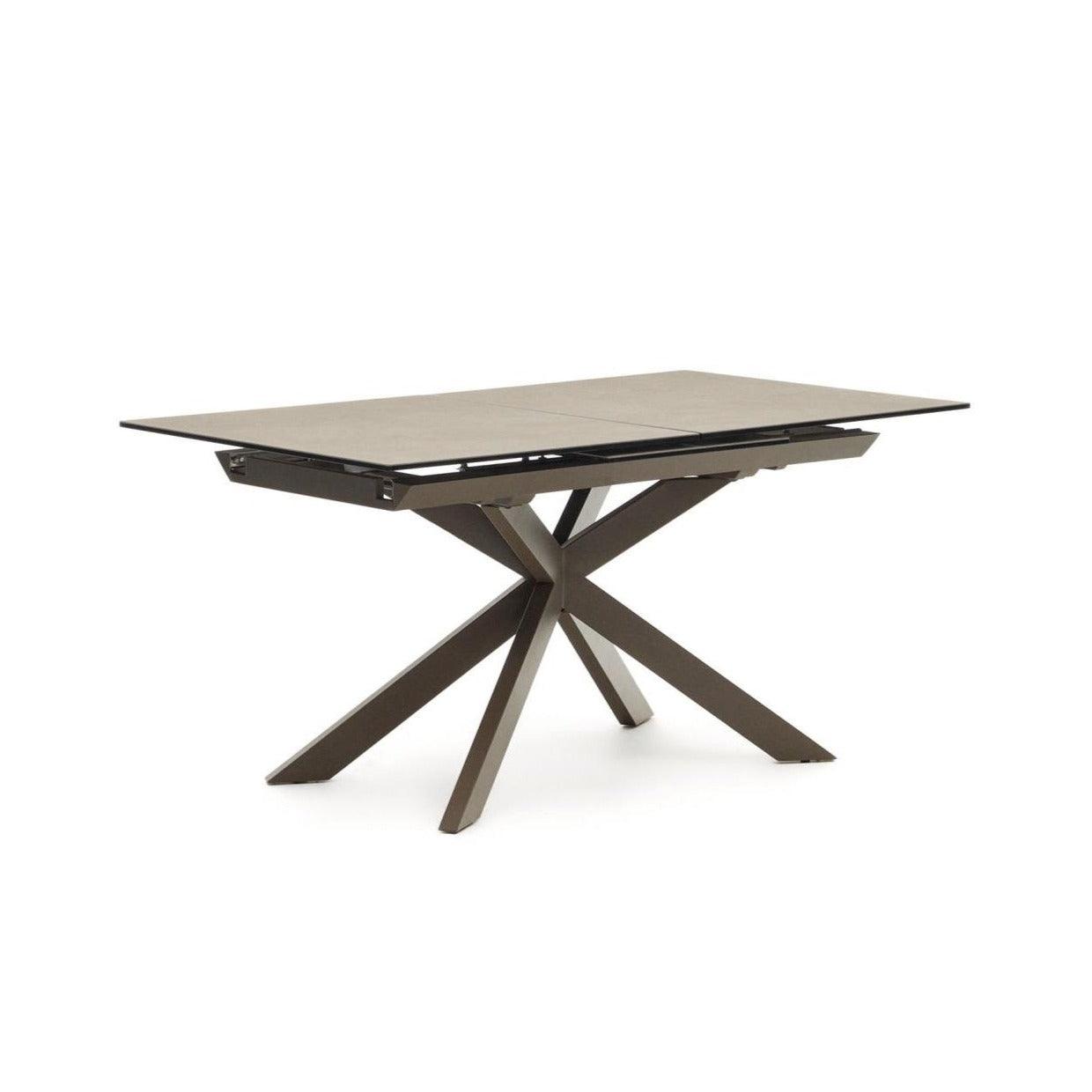 The crossed construction of the steel, brown legs of the table not only serves as an aesthetic element but also has practical applications, allowing for greater space between chairs. This detail makes dining comfortable, and users enjoy greater freedom of movement during shared meals.