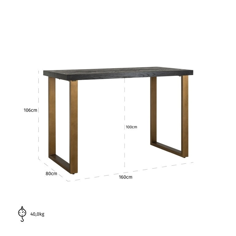 Extraordinary Bar Table Blackbone exudes timeless charm. Its rectangular top made of black, noble oak, beautifully arranged in a distinctive herringbone pattern, rests on a solid brass base. This subtle elegance makes the bar table an essential element of any dining room.
