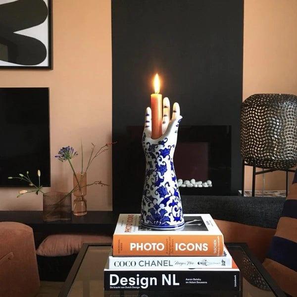 Candlestick Hands Up is a combination of a unique form and classic design. Traditional ornaments are well correlated with a non -standard shape, which makes almost every interior gain character. The blue color perfectly complements the entire project. The beauty of this candlestick is that it has many functions - try to put the keys or jewelry on your fingers.