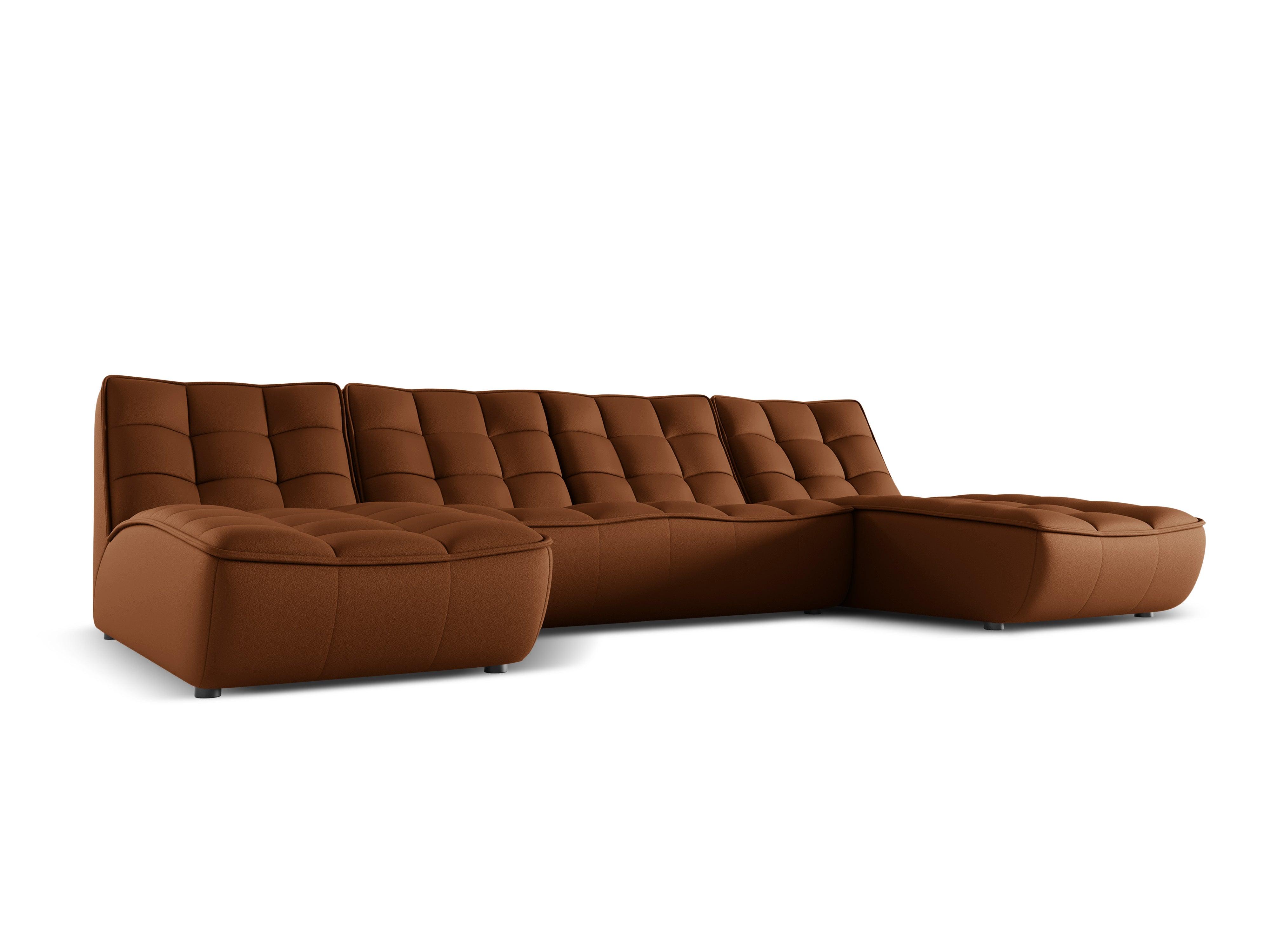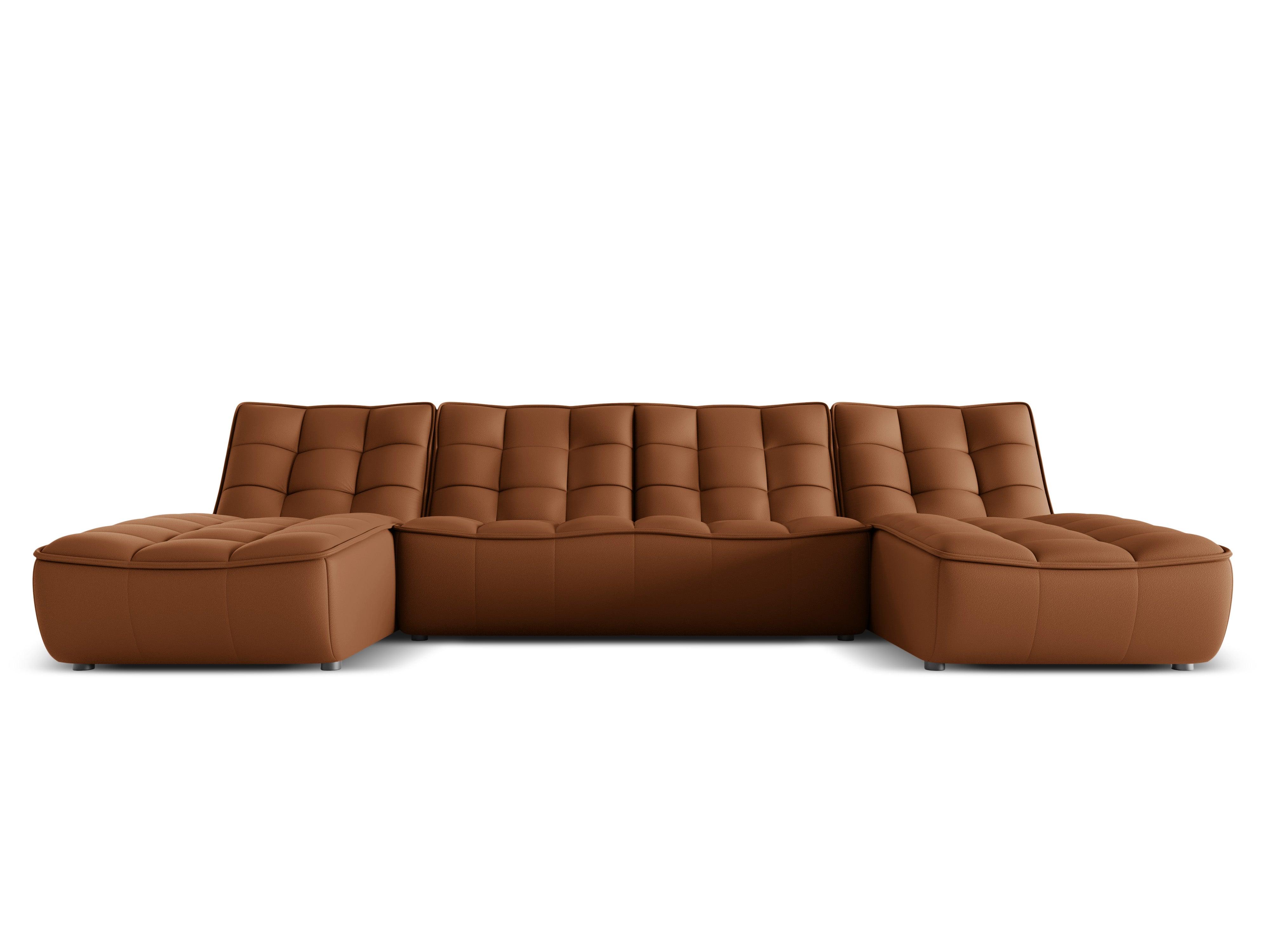 The upholstery made of natural cowhide is gently embossed, making its texture very pleasant to the touch. Ergonomic shapes provide free support for the entire back. The Moni collection includes several combinations of sofas and corner sofas, as well as elements such as armchairs, chaise longues, and poufs.