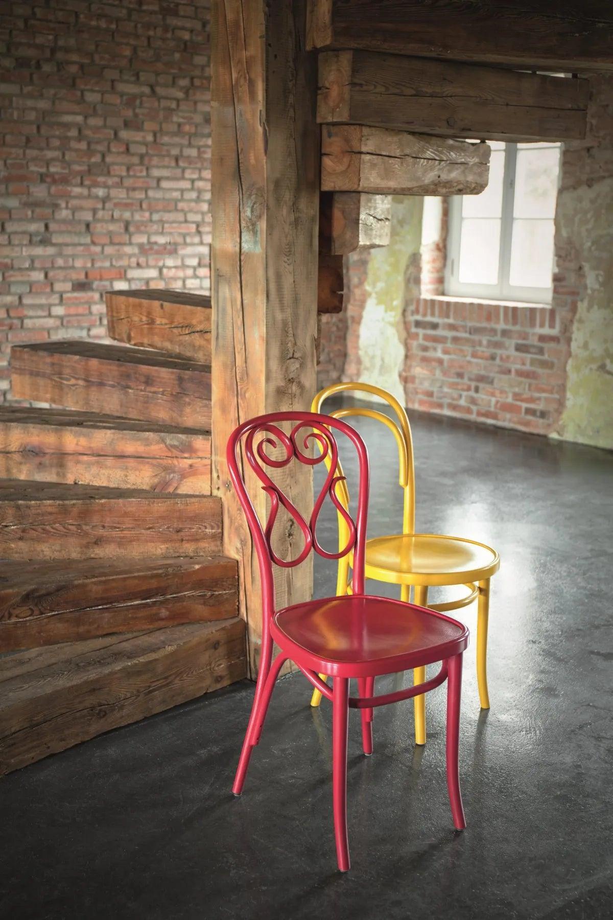 The A-4 chair is the closest family of the famous A-14 bent chair made in the same traditional, manual wood bending technology. Chair 4 is distinguished by a light and extremely strong design. The A-4 chair impresses with the perfect performance of bent backrest elements, which create an extremely decorative heart-shaped openwork. The plasticity with which chair 4 was designed and makes it a real work of applied art.