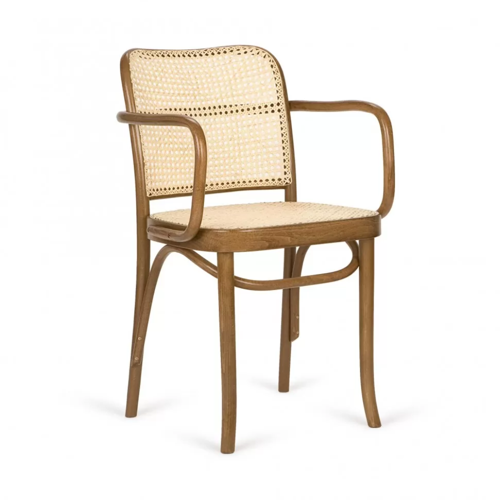 Chair with armrests B-8110 from the 8110 collection is a harmonious combination of classic design with a subtle hint of colonial aesthetics. Thanks to balanced proportions and a timeless form, this furniture perfectly fits in with interior design, in which heat, elegance and naturalness count. Wooden elements are formed in the bending process of beech under the influence of steam and high pressure, which provides them not only with exceptional durability, but also allows them to obtain liquid, subtle lines impossible to achieve with other techniques.