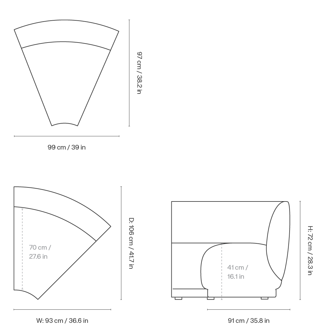 Corner element for modular sofa Rico is the perfect solution for those who value comfort and the ability to create their own seating arrangements. This corner element for the modular sofa stands out with its soft, enveloping shape and elegant, rounded lines that give the interior a modern and cozy character. The deep seat and ergonomic backrest ensure that the module for the modular sofa provides high comfort for everyday use.