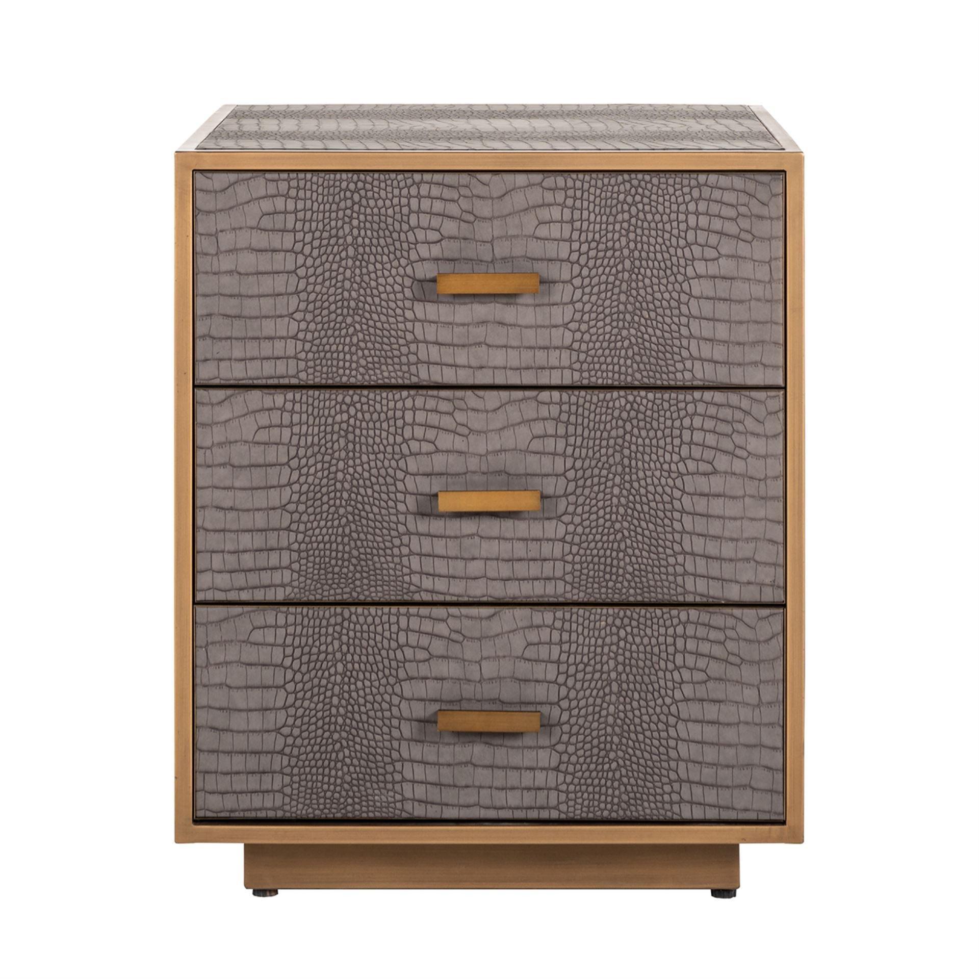 Dresser Classio is an extremely practical piece of furniture that offers three functional drawers, providing enough storage space. Its unique appearance is distinguished by brown leather and gold metal accents, creating a harmonious composition ideal for both modern interiors and those with glamor style.