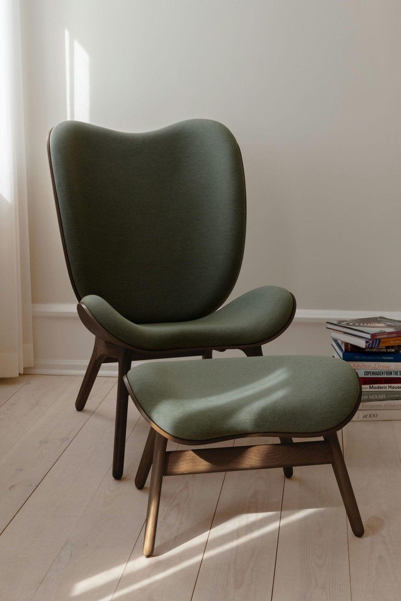 Armchair Conversation Piece Tall is available in oak, dark oak and black oak, in eight carefully selected shades of Horizons fabric, made entirely of recycled materials, as well as in two colors of Teddy Bear fabric.