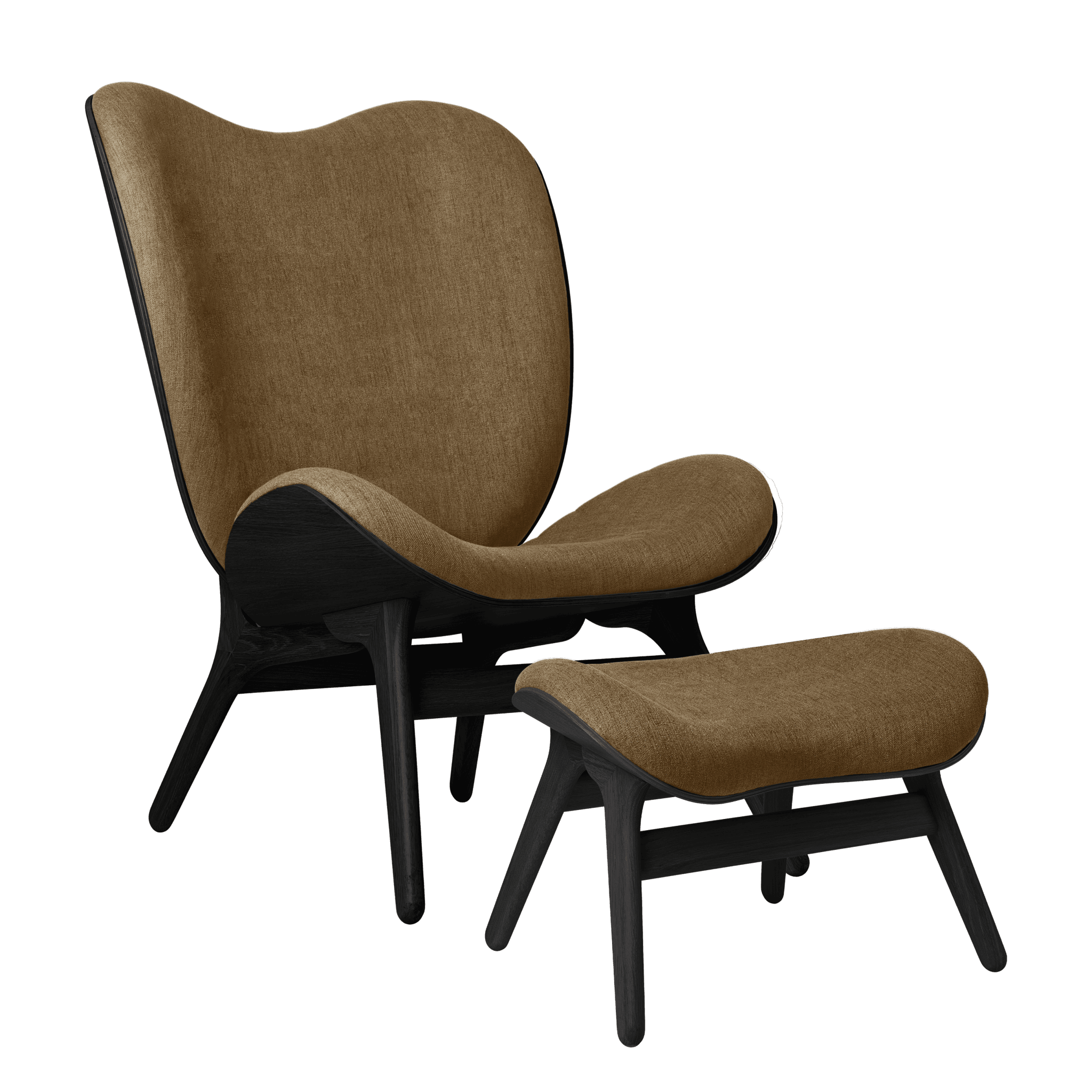 Armchair Conversation Piece Tall is available in oak, dark oak and black oak, in eight carefully selected shades of Horizons fabric, made entirely of recycled materials, as well as in two colors of Teddy Bear fabric.