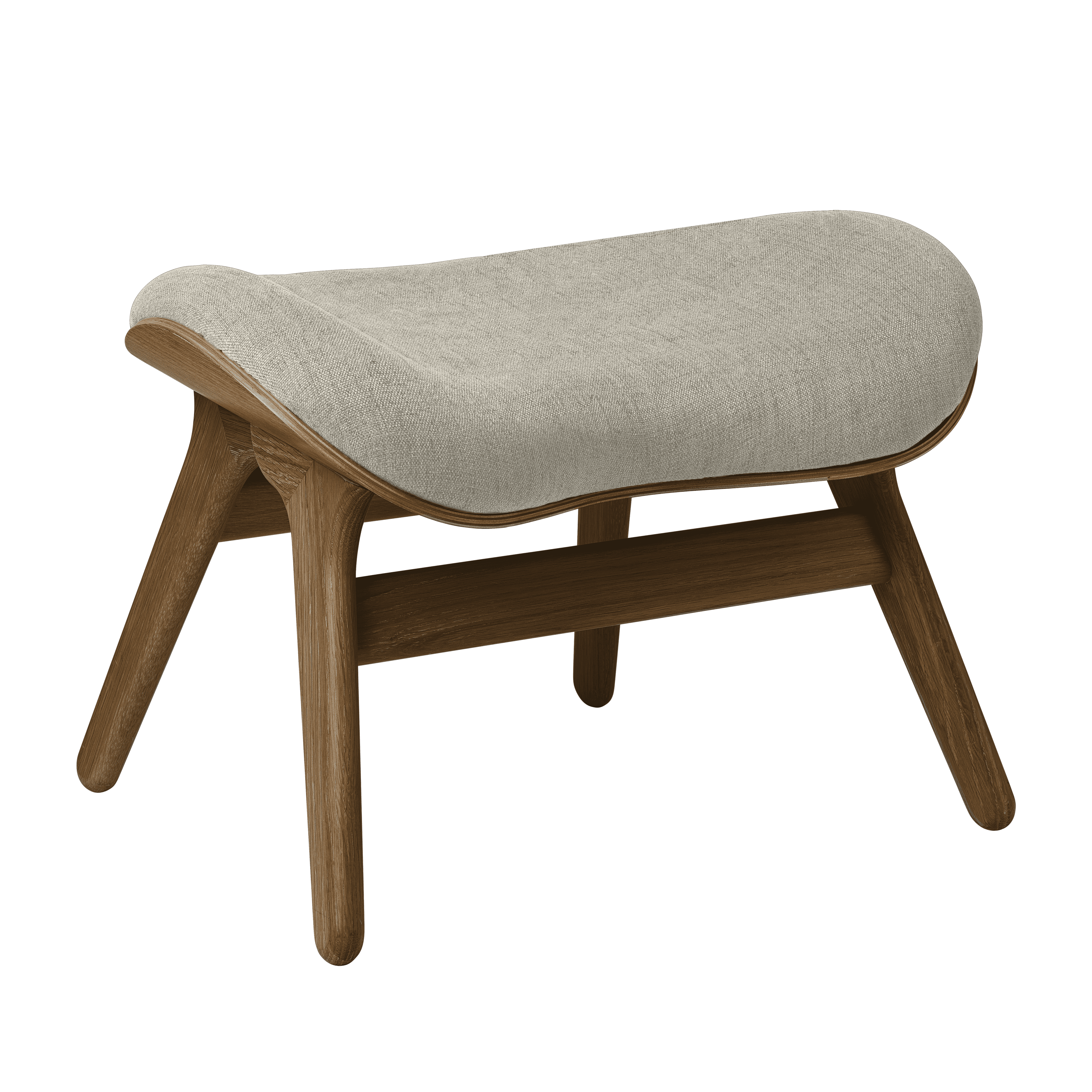 Conversation Piece ottoman is available in three color variants: oak, dark oak, and black oak, each offered in eight carefully selected shades of the Horizons fabric, made from 100% recycled materials or two fabrics from the Teddy collection.
