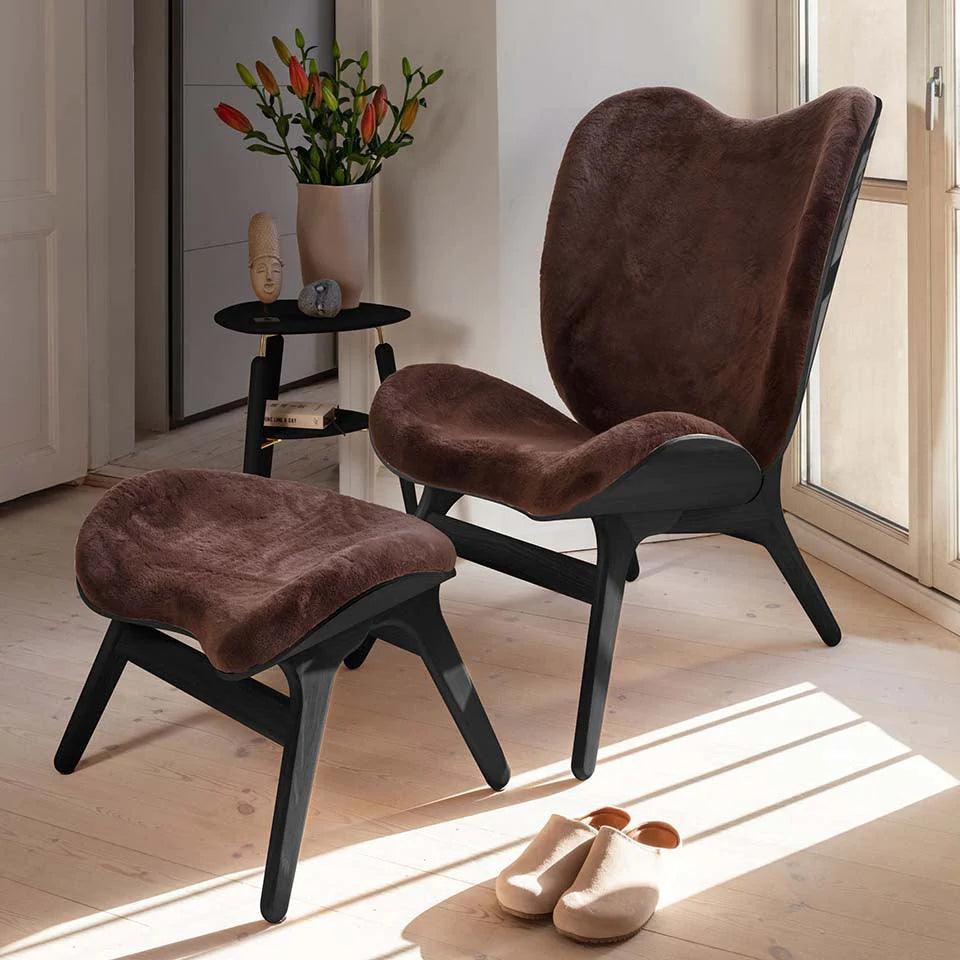 Fotel CONVERSATION PIECE TALL brązowy plusz z czarną podstawą UMAGE    Eye on Design