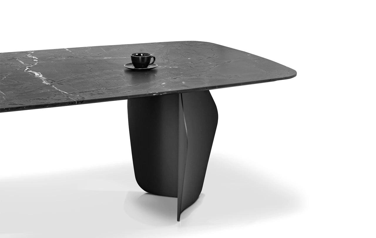 Infinity Dark Quarite is a natural material that authentically resembles a raw rock. Belonging to the metamorphic rocks, quartzite is characterized by an irregular texture of the stone, which is clearly noticeable. This unique feature makes it Designer table Convirio becomes not only a functional furniture, but also an artistic work that brings a unique, natural element to the home space.